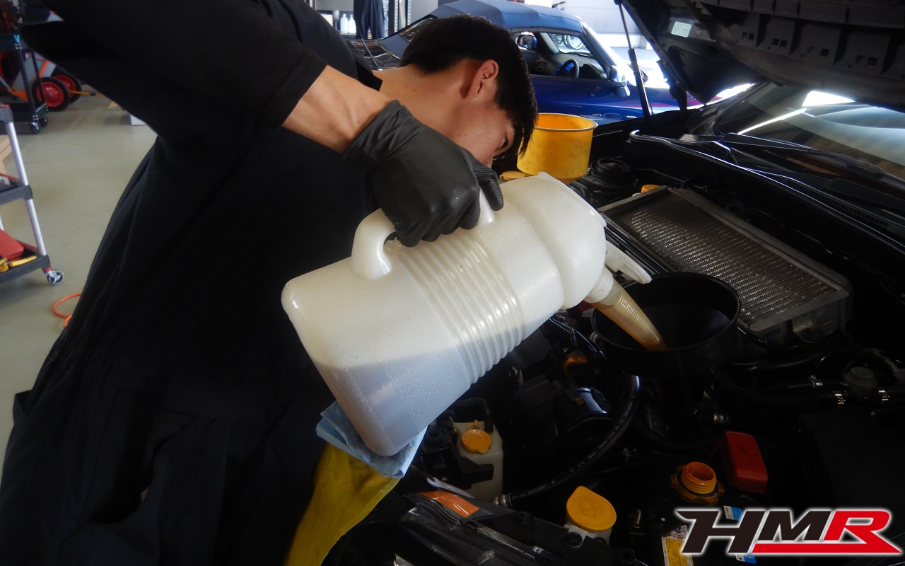 エンジンオイル、オイルフィルター、クーラント液、フロント&リアデフオイル、ブレーキフルードを交換しました。エンジンオイルはWAKO’SプロステージS 10W-40、フロント/リアデフオイルはWAKO’S ギアオイルMG-90に交換しています。