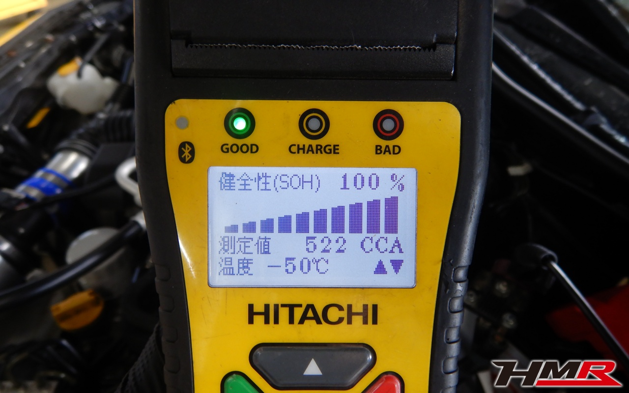 バッテリー、インテークホース、エアクリーナー、補機ベルト、プラグ、ブレーキ・クラッチマスターシリンダー、各部ゴム類の劣化、パッキン類・シール類からのオイル滲み・漏れ、ラジエターの劣化、冷却水漏れ、その他異音などをチェックしました。特に問題はありませんでした。