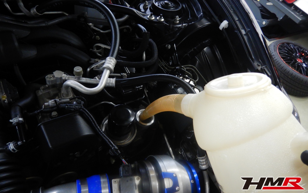 エンジンオイル、オイルフィルター、クーラント液、ミッションオイル、リアデフオイル、ブレーキフルードを交換しました。エンジンオイルはWAKO’SプロステージS 0W-30、リアデフオイルはWAKO’S ギアオイルMG-90に交換しています。