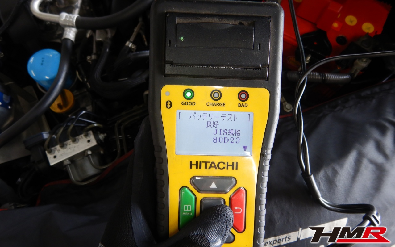 バッテリー、インテークホース、エアクリーナー、補機ベルト、プラグ、ブレーキ・クラッチマスターシリンダー、各部ゴム類の劣化、パッキン類・シール類からのオイル滲み・漏れ、ラジエターの劣化、冷却水漏れ、その他異音などをチェックしました。