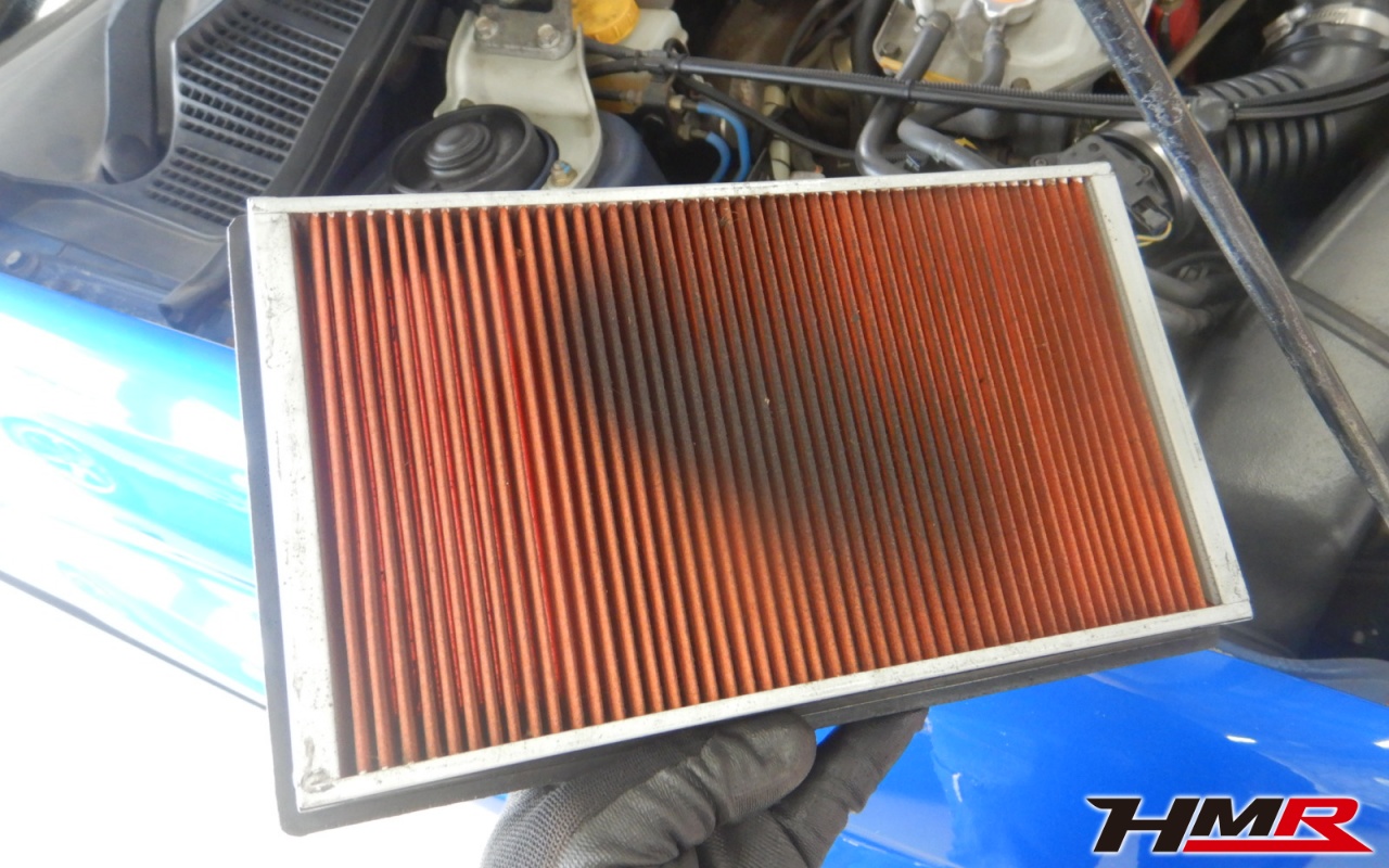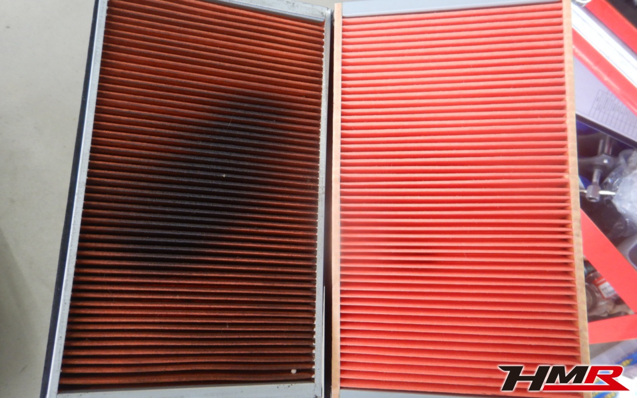 バッテリー、インテークホース、エアクリーナー、補機ベルト、プラグ、ブレーキ・クラッチマスターシリンダー、各部ゴム類の劣化、パッキン類・シール類からのオイル滲み・漏れ、ラジエターの劣化、冷却水漏れ、その他異音などをチェックしました。エアクリーナーに少し汚れが見られましたのでお客様のご注文で交換させていただきました。