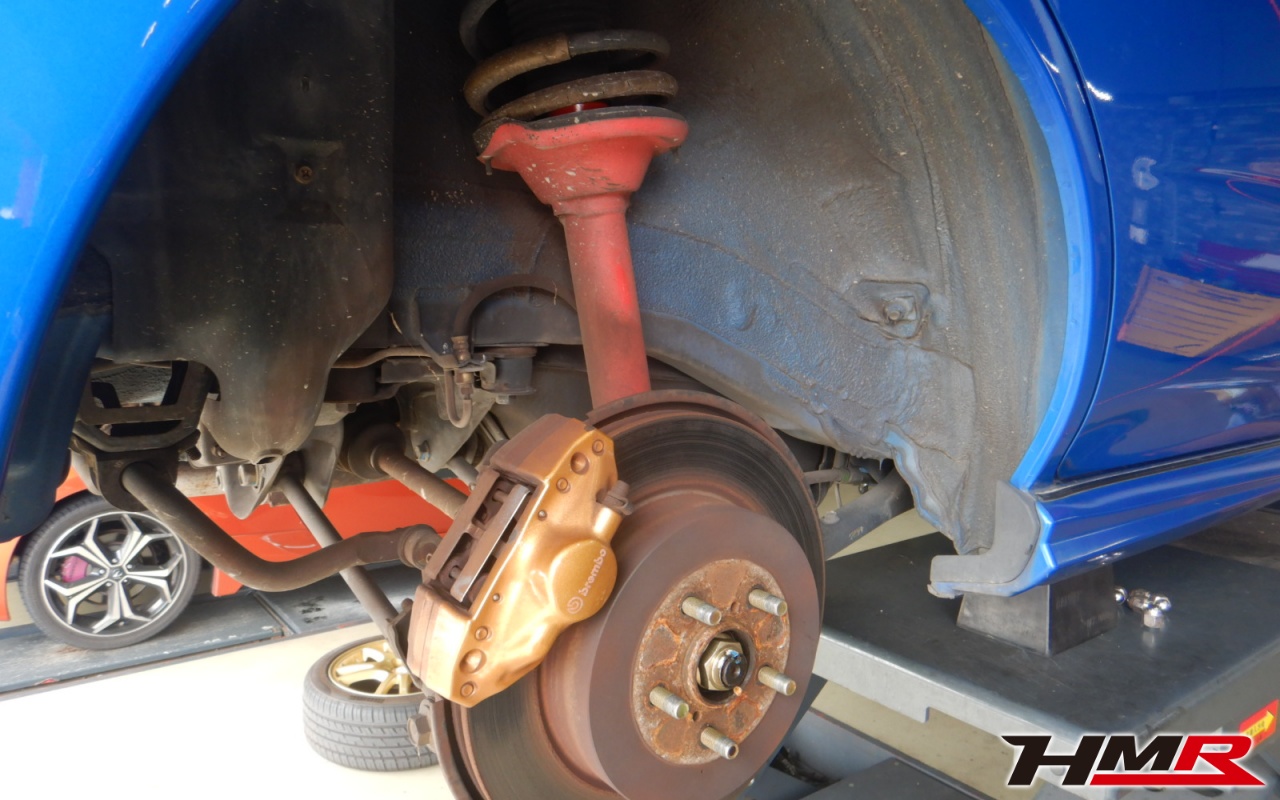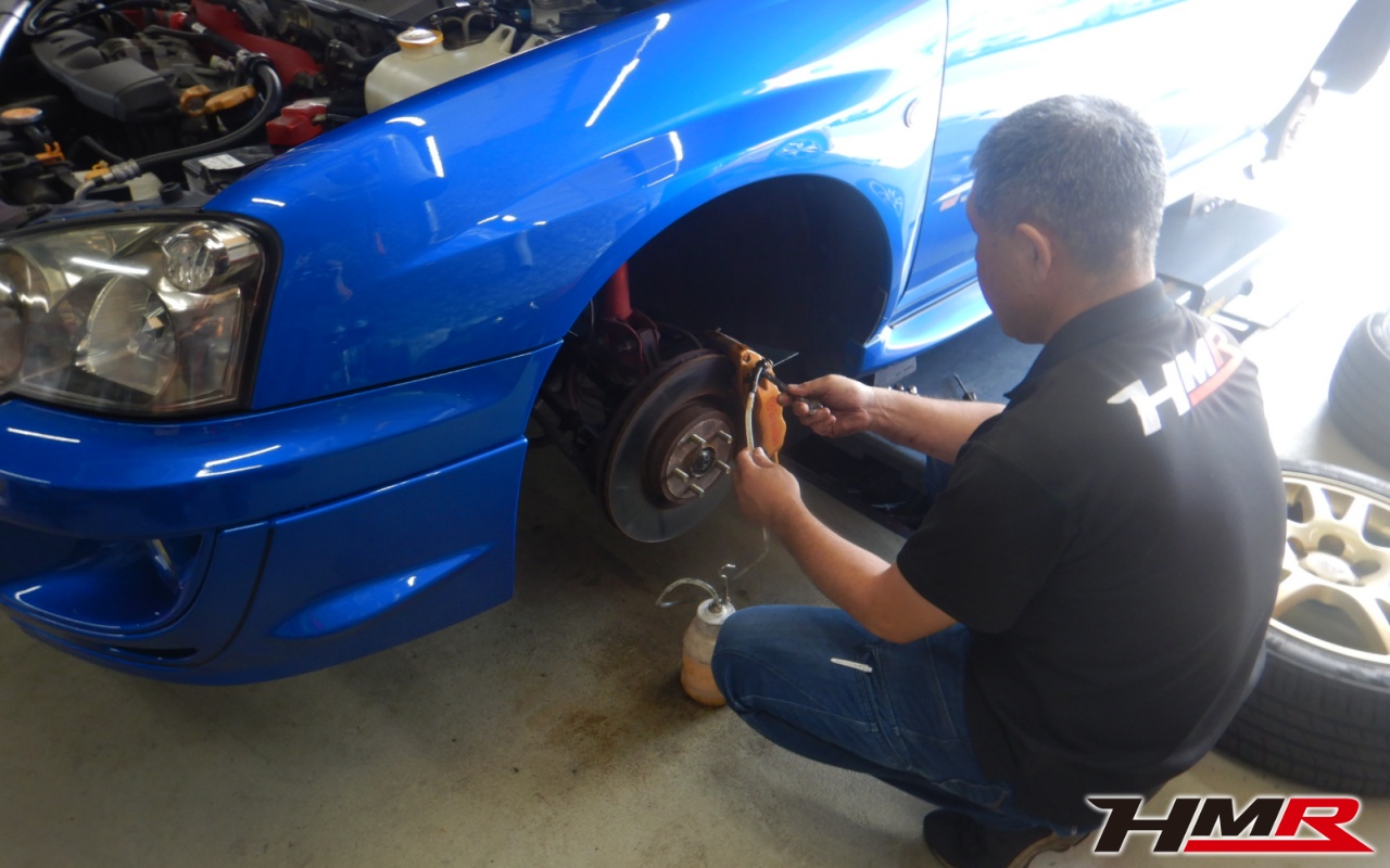 HMR(エイチエムアール)の秋山です。今回は純正17インチ 社外追加メーター ナビ装備のインプレッサWRX (GDB)の納車前点検整備を行いました。担当メカニックは手代木です。