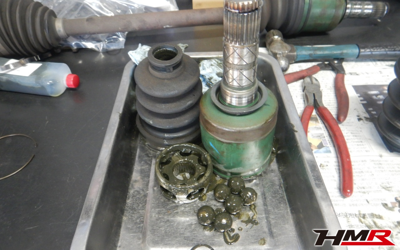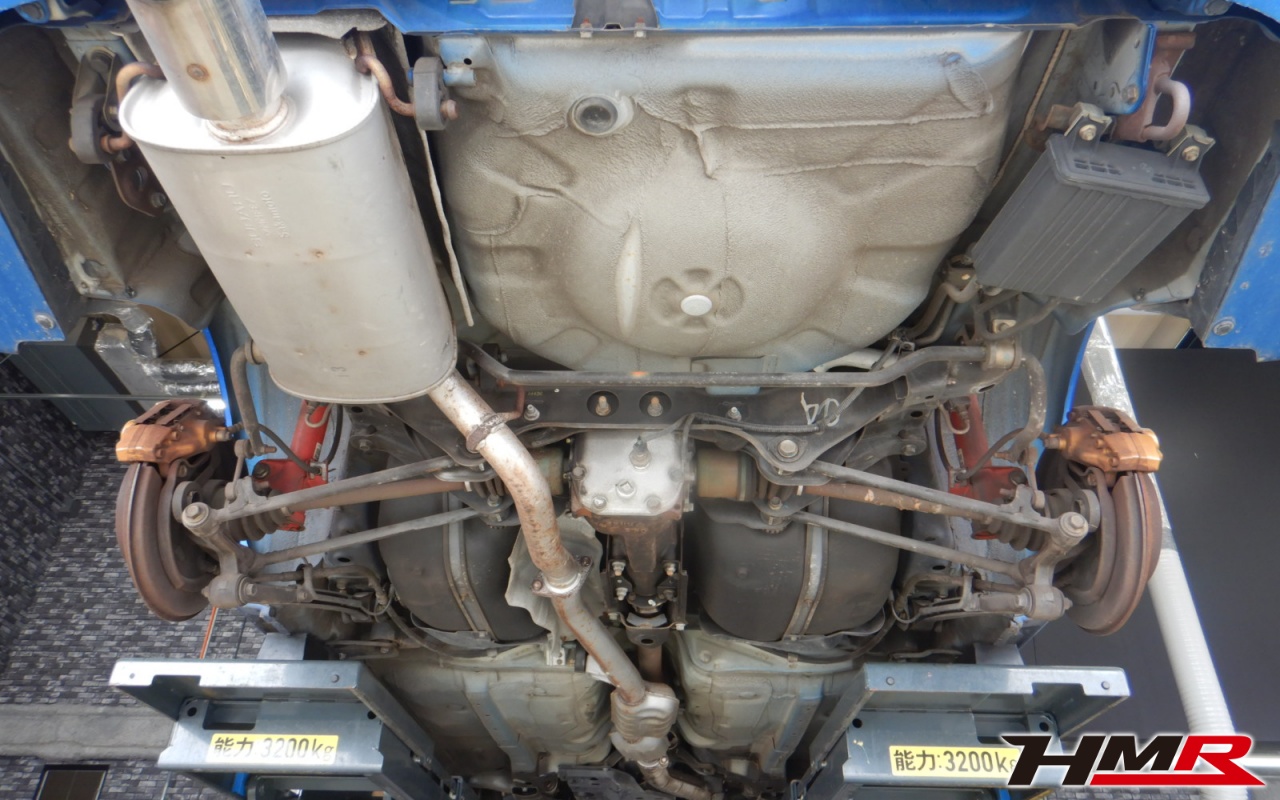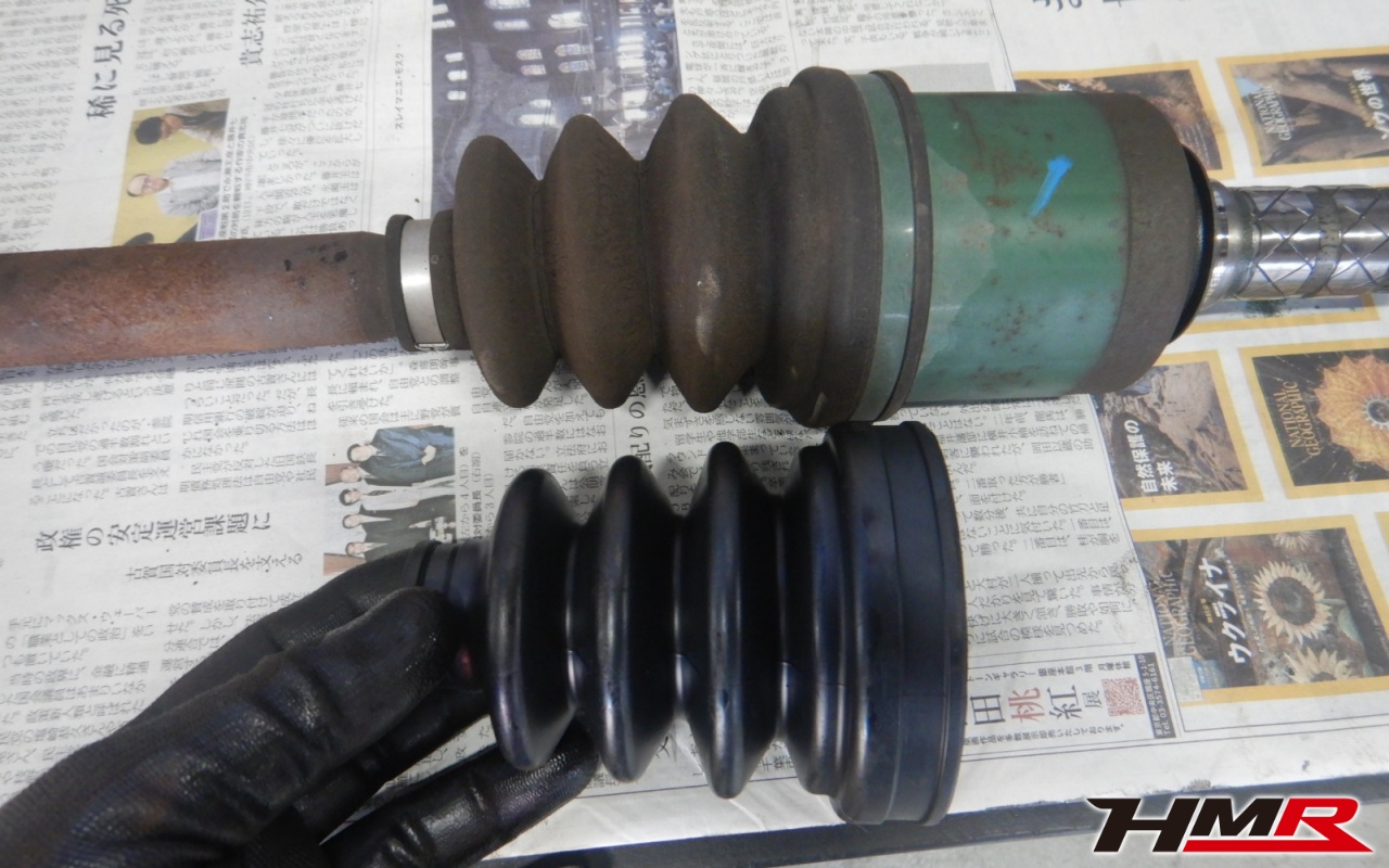 ハブベアリング・ボールジョイント、アーム・リンク類のガタ、ブッシュ・ブーツ類の劣化、エンジン・ミッション・デフからのオイル漏れと各マウント類、タイヤ溝の残量、空気圧の点検しました。ヒビや劣化していた左タイロットエンドブーツ、左リアのスタビリンクロッドブーツ、左右フロントドライブシャフトブーツ、左リアアッパーマウントを交換させていただきました。