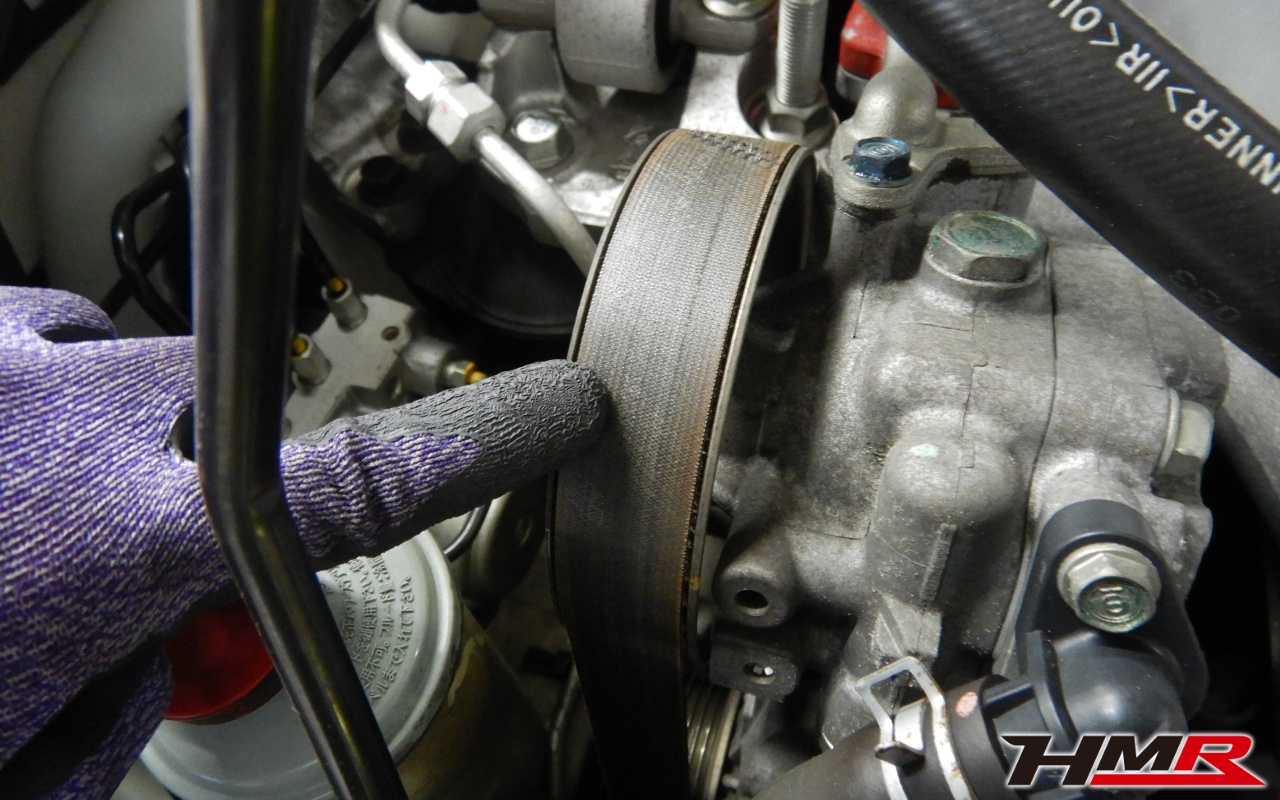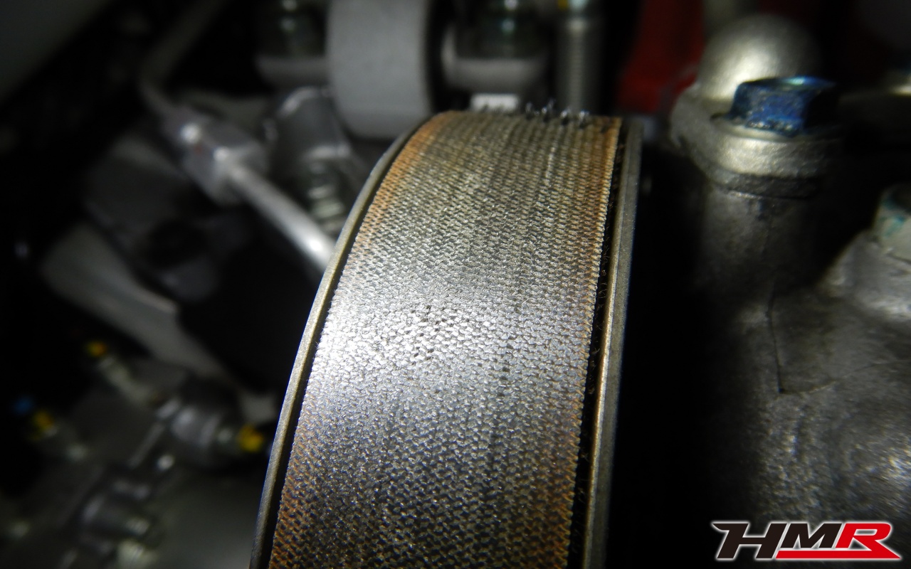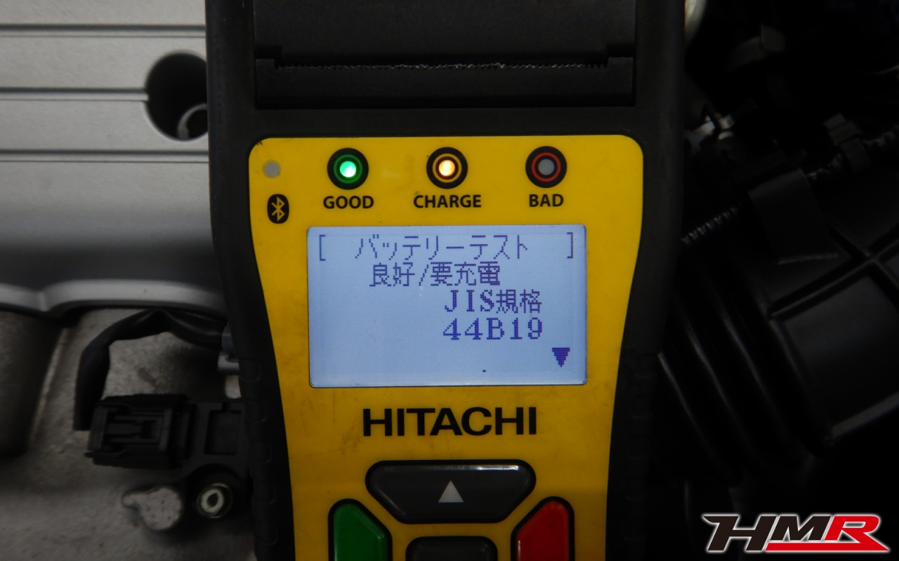 バッテリー、インテークホース、エアクリーナー、補機ベルト、プラグ、ブレーキ・クラッチマスターシリンダー、各部ゴム類の劣化、パッキン類・シール類からのオイル滲み・漏れ、ラジエターの劣化、冷却水漏れ、その他異音などをチェックしました。ファンベルトにヒビが見られましたがすぐの交換は必要ないのでタイミングを見ての交換をおすすめします。