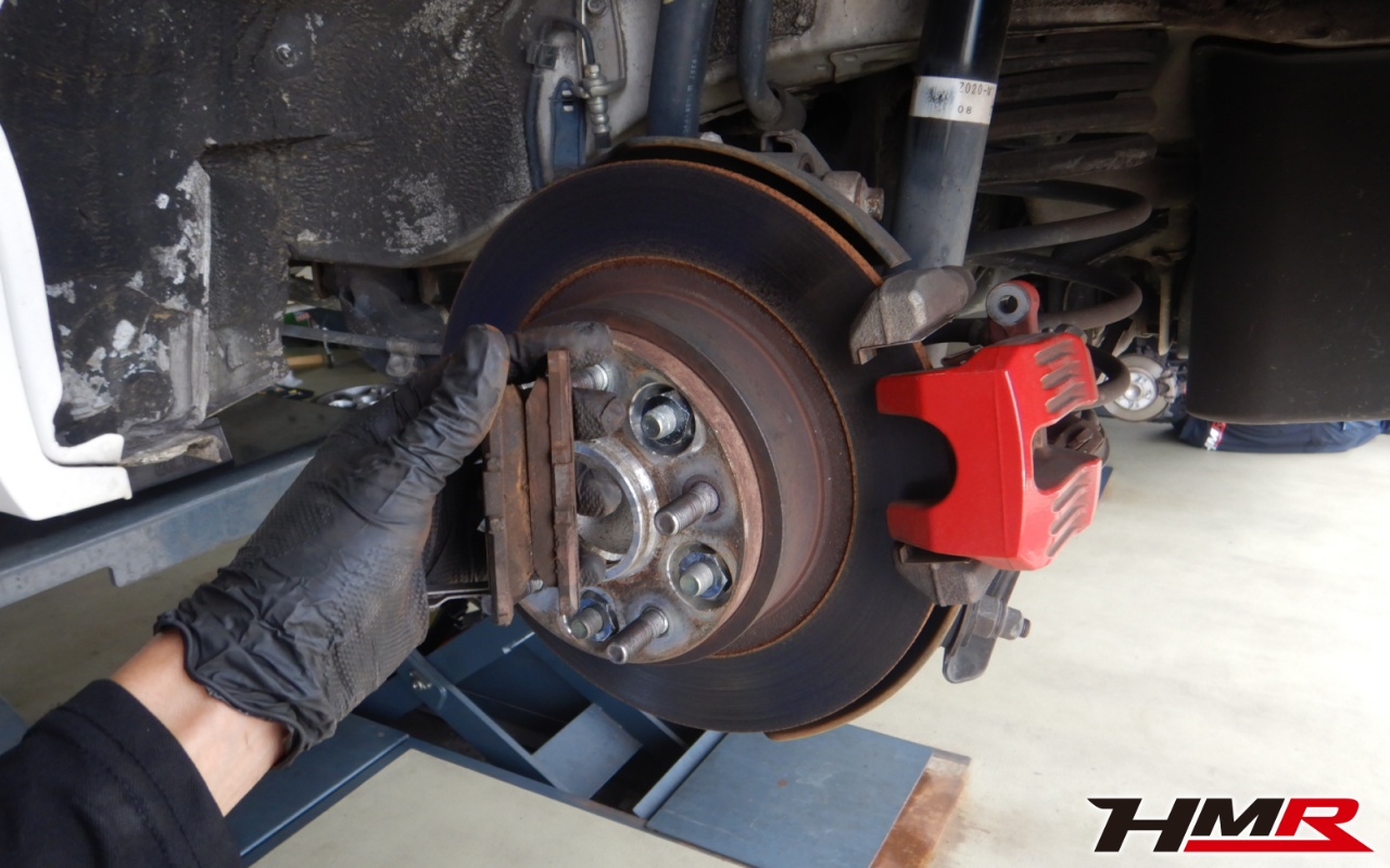ブレーキキャリパーシール・キャリパーピストン、パッドの残量、ブレーキホースの劣化、ブレーキディスクローターの摩耗をチェックしました。ブレーキローターが少し摩耗しているようなので今後タイミングを見ての交換をおすすめします。ブレーキパッドの残量はおおそよフロント8.6mm・リア7.8mmでした。