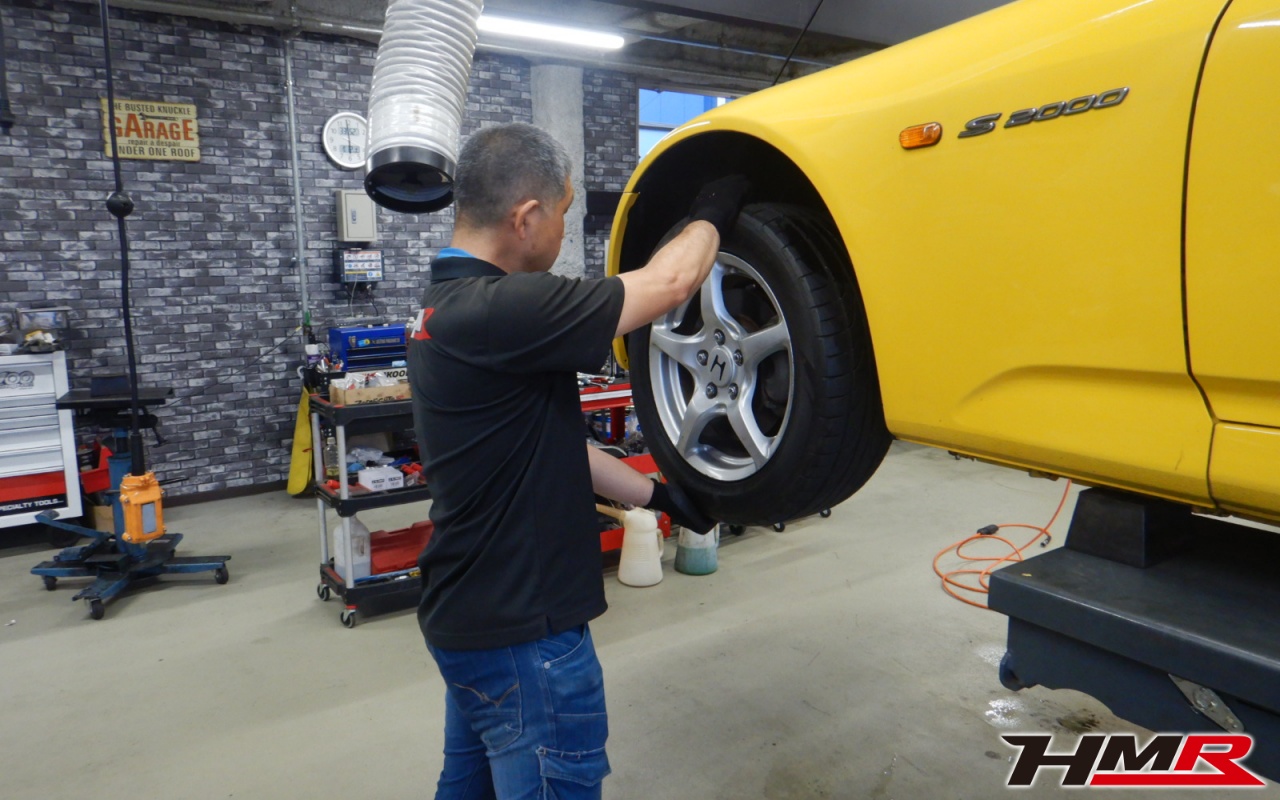 HMR(エイチエムアール)の秋山です。今回は1オーナー 新品ガラス幌 赤革シート装備のS2000(AP1)の納車前点検整備を行いました。担当メカニックは手代木です。