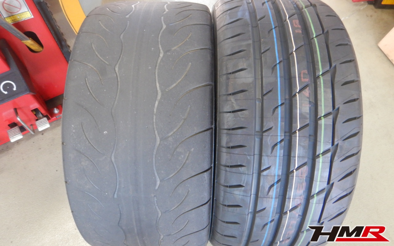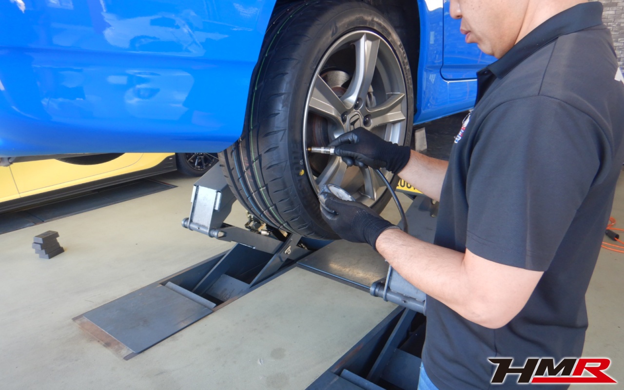 ハブベアリング・ボールジョイント、アーム・リンク類のガタ、ブッシュ・ブーツ類の劣化、エンジン・ミッション・デフからのオイル漏れと各マウント類、タイヤ溝の残量、空気圧の点検しました。右フロントロアアームブーツ、右フロントロアアームブッシュ、左右トーコントロールロッドブーツにヒビが見られましたがこちらもすぐの交換は必要ないのでタイミングを見ての交換をおすすめします。タイヤはご用命いただきましたブリジストン製のアドレナリンRE004に新品交換させていただきました。