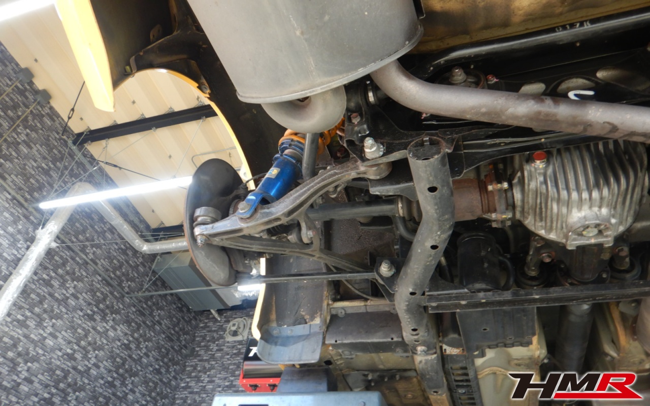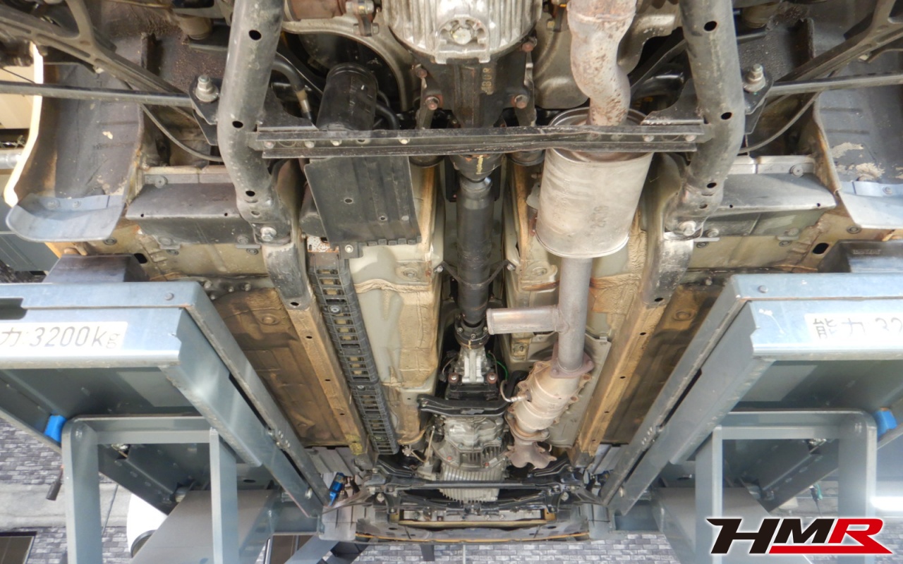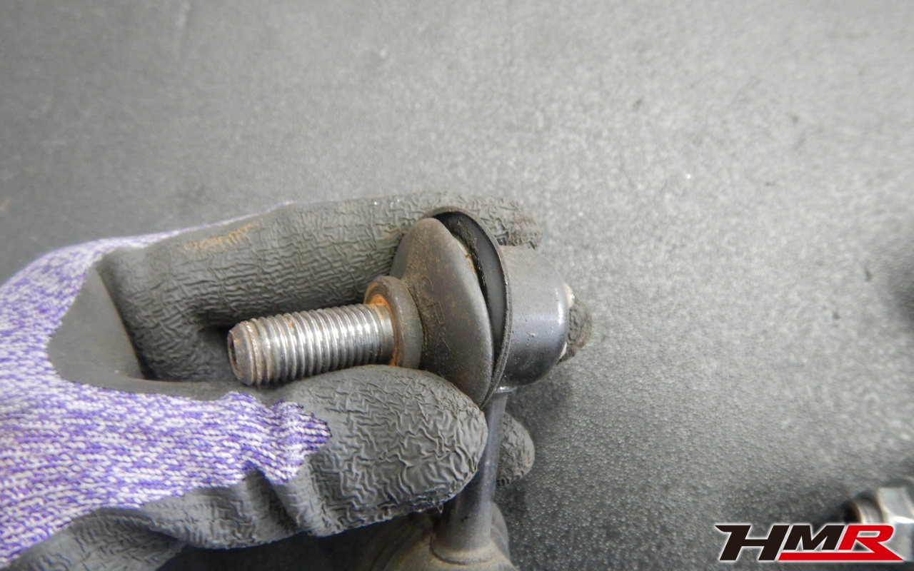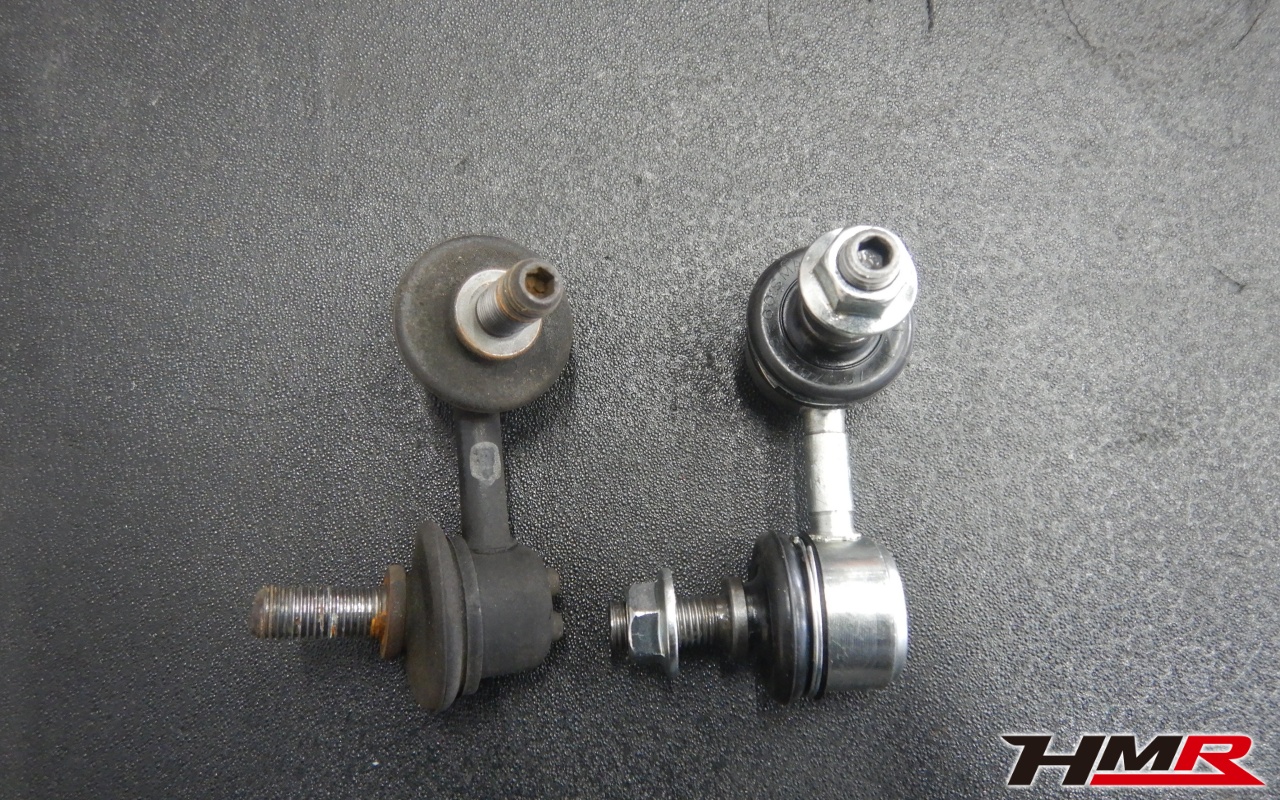 ハブベアリング・ボールジョイント、アーム・リンク類のガタ、ブッシュ・ブーツ類の劣化、エンジン・ミッション・デフからのオイル漏れと各マウント類、タイヤ溝の残量、空気圧の点検しました。右側フロントスタビリンクロッドブーツが切れていたため交換させていただきました。また左側リアブーツにもヒビが見られましたがこちらはすぐの交換は必要ないためタイミングを見ての交換をおすすめします。
