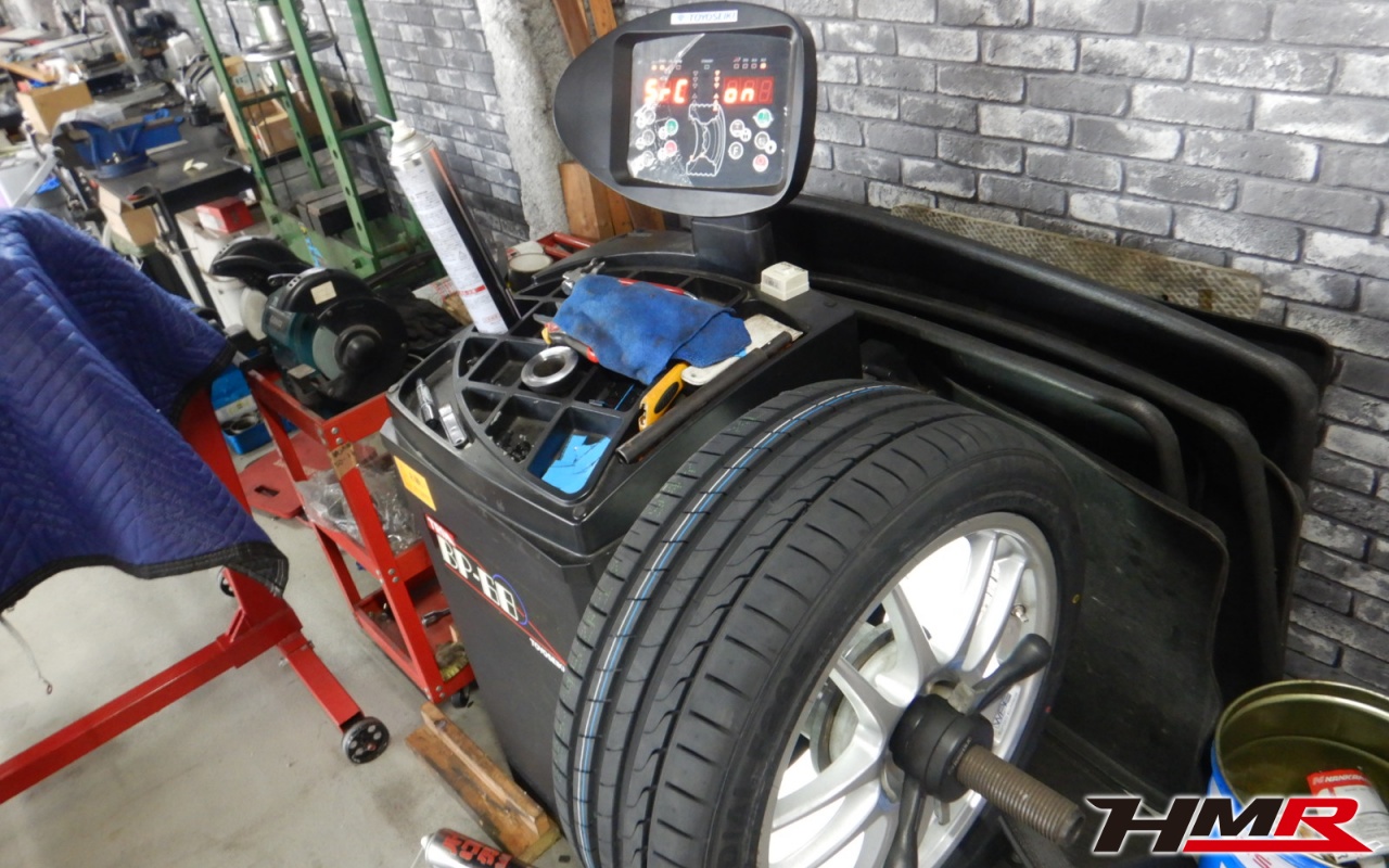 タイヤはお客様のオーダーで新品ミネルバのF205で、フロント225/45R17・リア215/45R17に交換させていただきました。