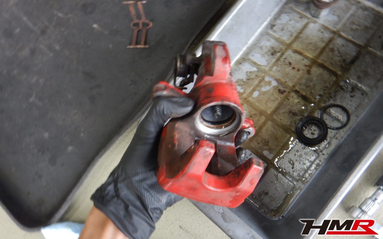 ブレーキキャリパーシール・キャリパーピストン、パッドの残量、ブレーキホースの劣化、ブレーキディスクローターの摩耗をチェックしました。リアブレーキパッドが少なくなっていたためご用命いただいていたDIXCELのESに交換させていただきました。それに伴いリア左右キャリパーもオーバーホールさせていただきました。