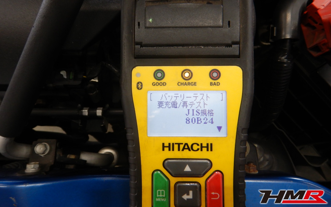 バッテリー、インテークホース、エアクリーナー、補機ベルト、プラグ、ブレーキ・クラッチマスターシリンダー、各部ゴム類の劣化、パッキン類・シール類からのオイル滲み・漏れ、ラジエターの劣化、冷却水漏れ、その他異音などをチェックしました。ヘッドカバーパッキンから滲みが見られました。すぐの修理は必要ないですが、タイミングをみてのパッキン交換をおすすめします。またバッテリーが弱っていましたので交換させていただきました。