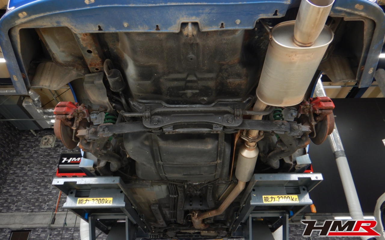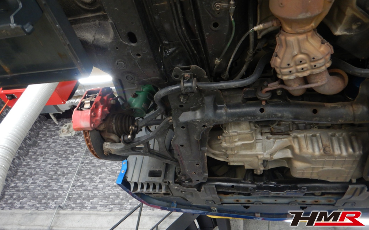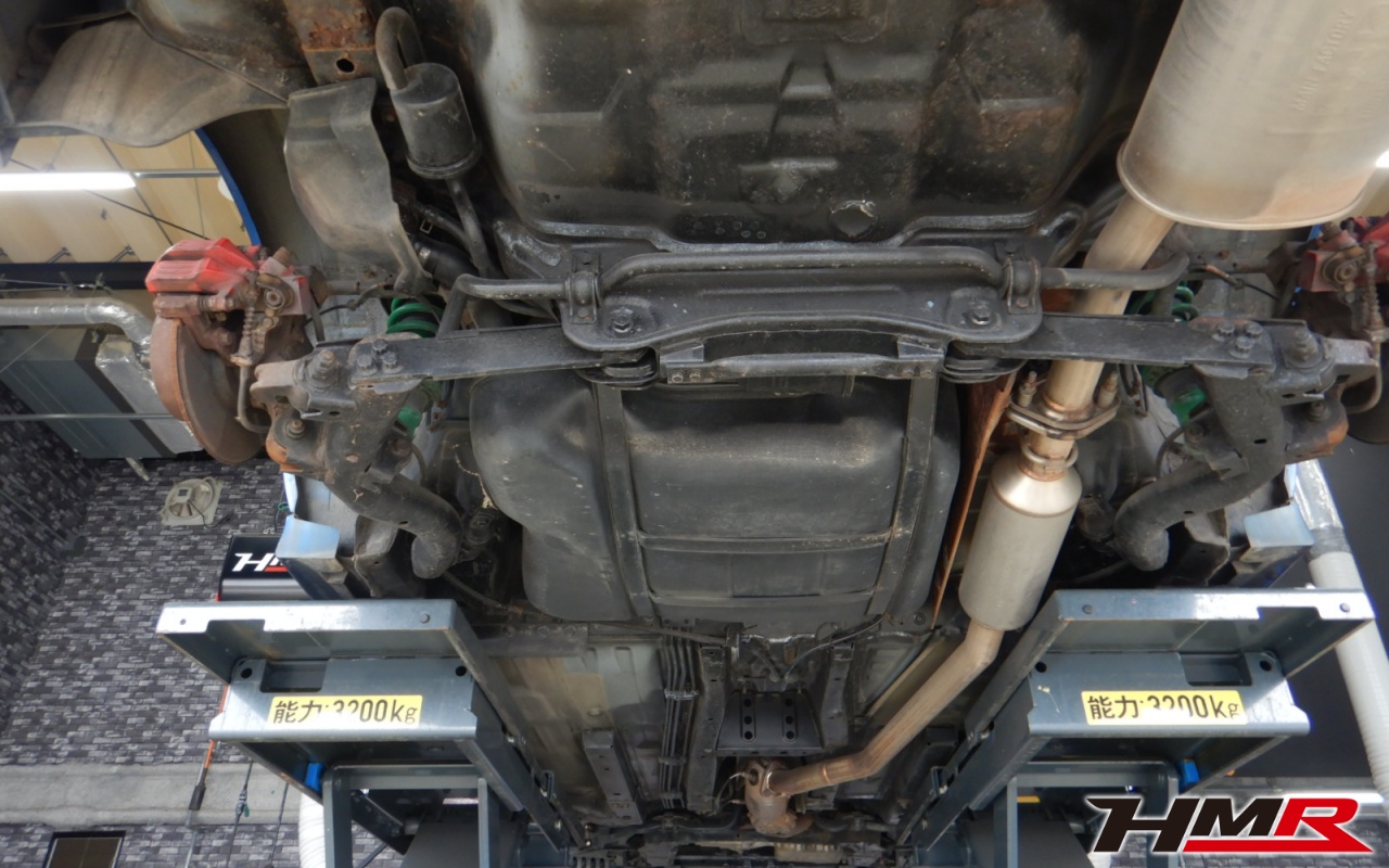 ハブベアリング・ボールジョイント、アーム・リンク類のガタ、ブッシュ・ブーツ類の劣化、エンジン・ミッション・デフからのオイル漏れと各マウント類、タイヤ溝の残量、空気圧の点検しました。