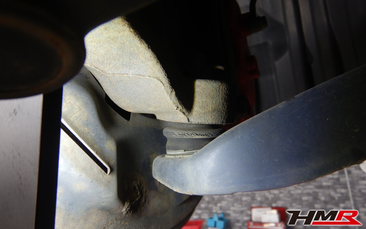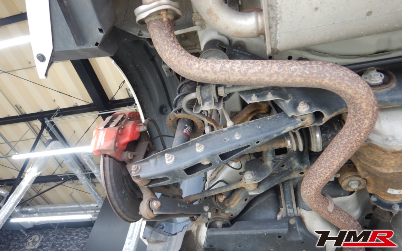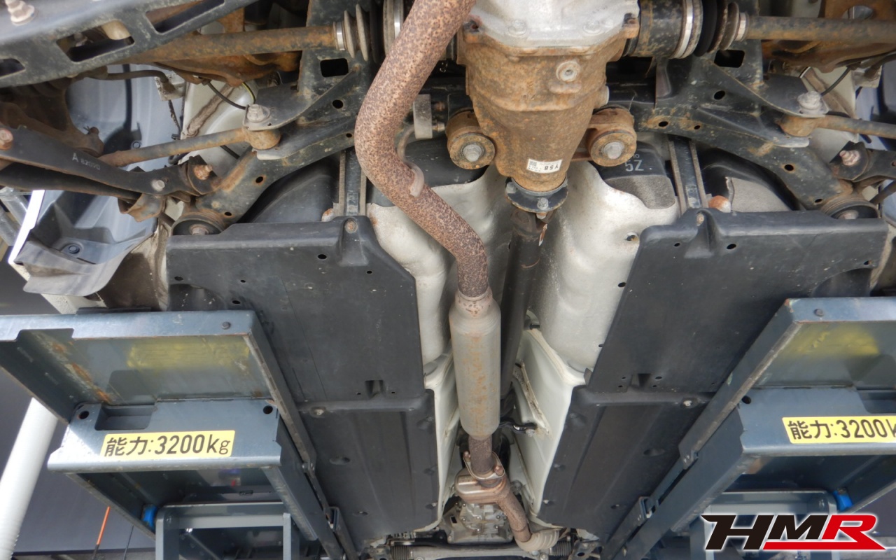ハブベアリング・ボールジョイント、アーム・リンク類のガタ、ブッシュ・ブーツ類の劣化、エンジン・ミッション・デフからのオイル漏れと各マウント類、タイヤ溝の残量、空気圧の点検しました。左右フロントロアアームブーツにヒビが見られますのでタイミングを見ての交換をおすすめします。