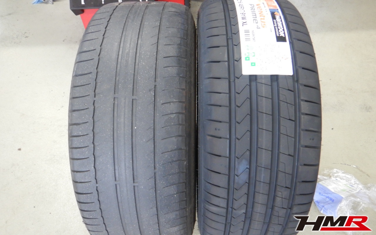 点検時に交換が必要な部品のリフレッシュをさせていただきました。交換した部品は以下となります。キー電池、フロントワイパーラバー、エアコンフィルターになります。あとご用命いただきましたタイヤはハンコック製K135を新品で交換させていただきました。タイヤサイズは前後215/45R17になります。