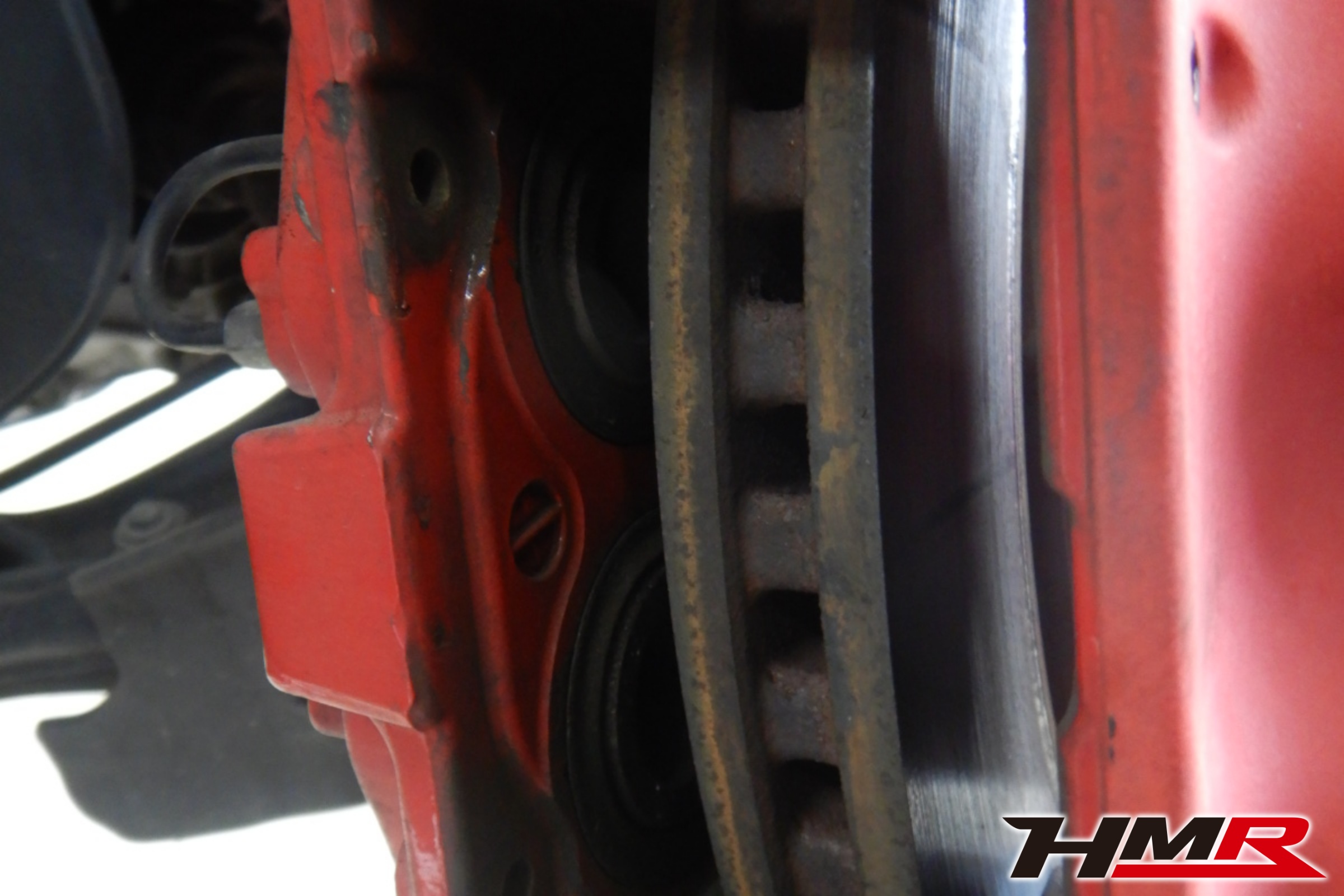 ブレーキキャリパーシール・キャリパーピストン、パッドの残量、ブレーキホースの劣化、ブレーキディスクローターの摩耗をチェックしました。フロントのブレーキローターが少し摩耗しているようなので、次回のフロントパッド交換時などに同時にローターの交換をおすすめします。ブレーキパッドの残量はおおそよフロント7.9mm・リア5.1mmでした。