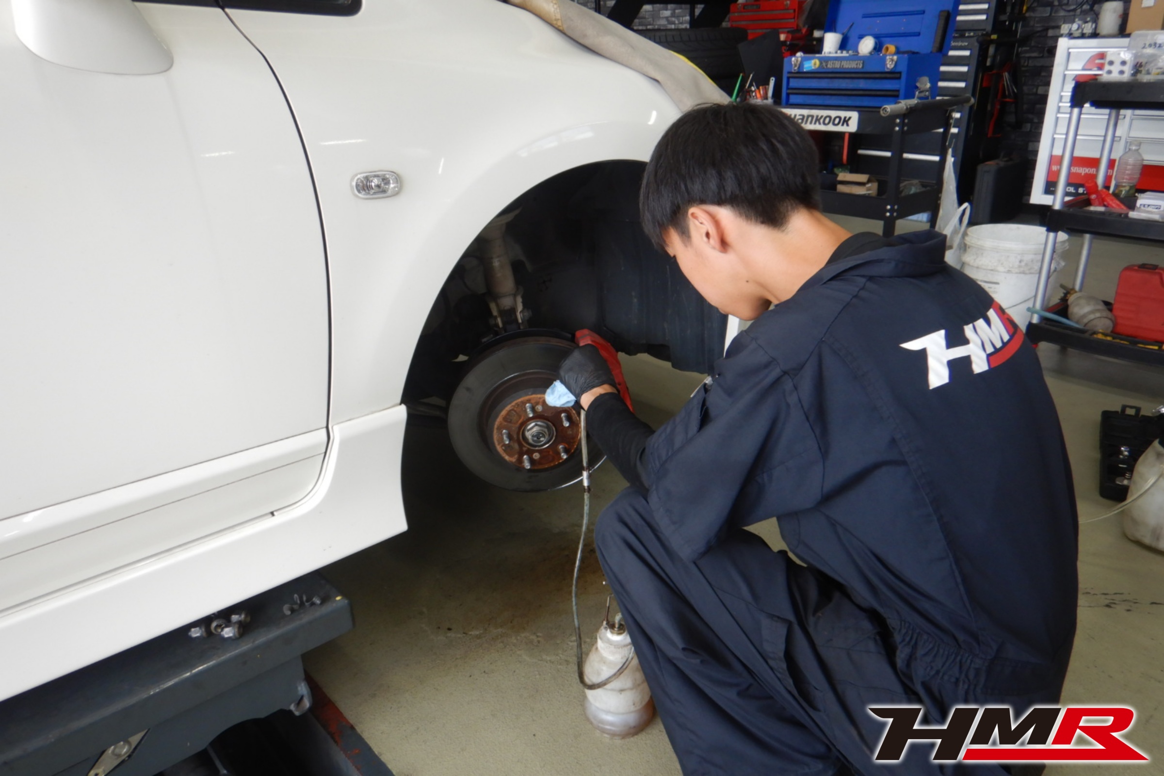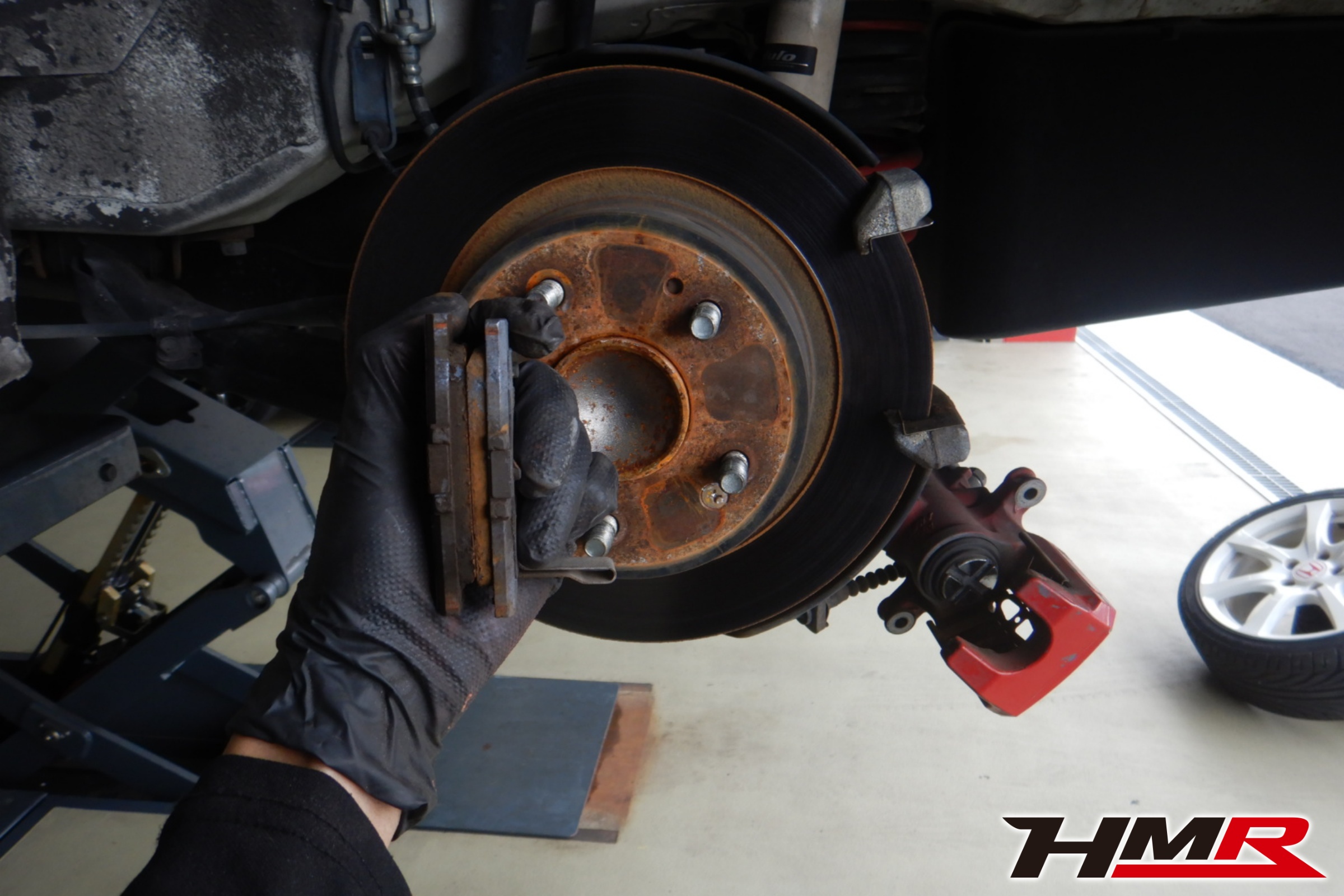 HMR(エイチエムアール)の秋山です。今回は純正18インチ Moduloダンパー装備のシビックタイプR(FD2)の納車前点検整備を行いました。担当メカニックは手代木です。