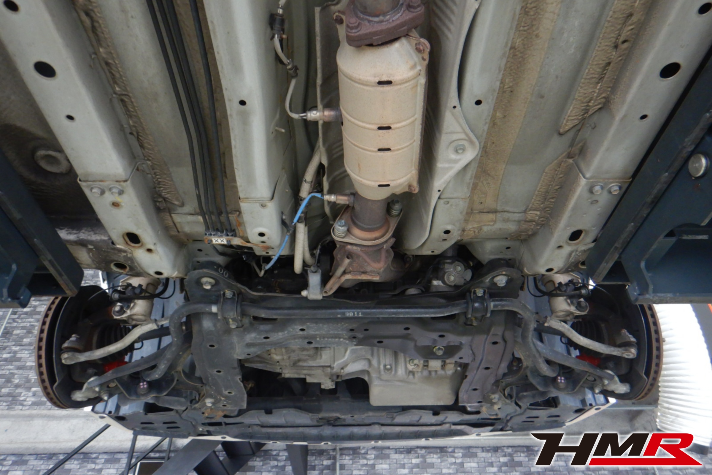 ハブベアリング・ボールジョイント、アーム・リンク類のガタ、ブッシュ・ブーツ類の劣化、エンジン・ミッション・デフからのオイル漏れと各マウント類、タイヤ溝の残量、空気圧の点検しました。左フロント、リア左右スタビリンクブーツ、ロアトルクロッドブッシュ、左右フロントロアアームブッシュにヒビが見られました。まだ切れてはいないのですぐの交換は必要ないですが、今後のメンテナンスとしておすすめします。