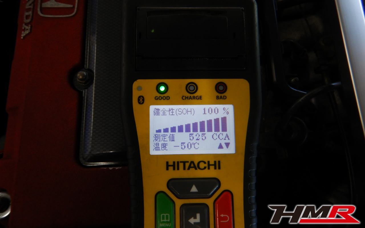 バッテリー、インテークホース、エアクリーナー、補機ベルト、プラグ、ブレーキ・クラッチマスターシリンダー、各部ゴム類の劣化、パッキン類・シール類からのオイル滲み・漏れ、ラジエターの劣化、冷却水漏れ、その他異音などをチェックしました。特に問題ありませんでした。