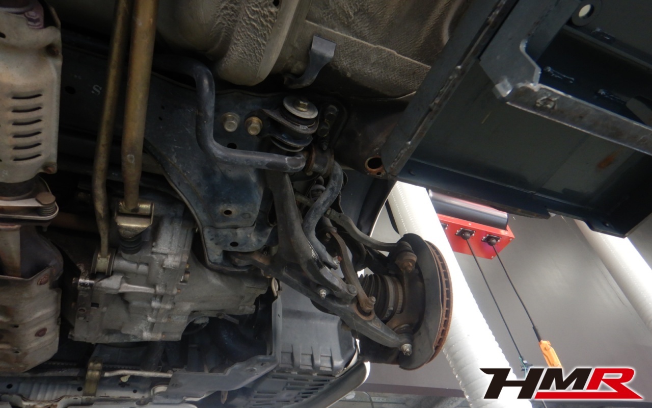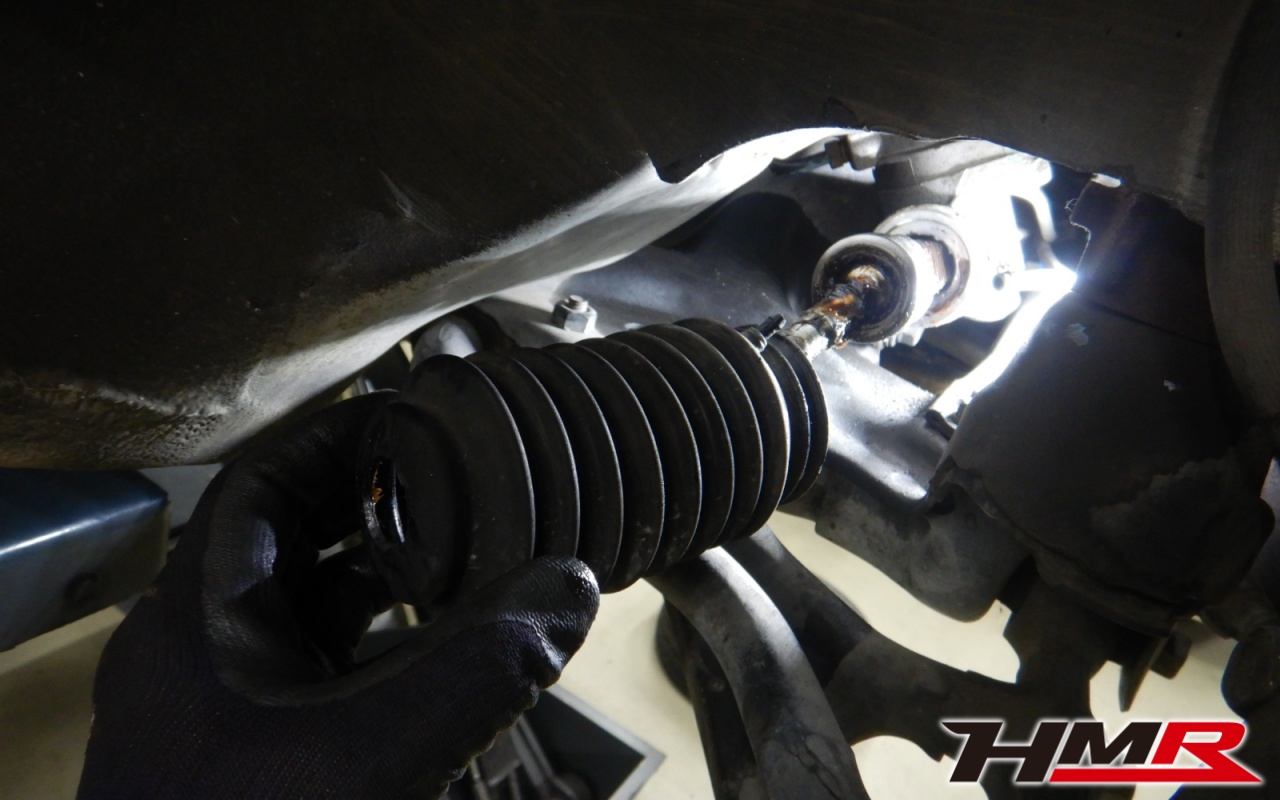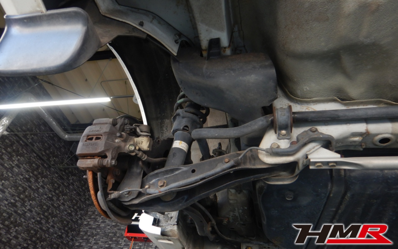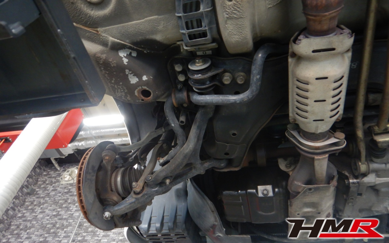 ハブベアリング・ボールジョイント、アーム・リンク類のガタ、ブッシュ・ブーツ類の劣化、エンジン・ミッション・デフからのオイル漏れと各マウント類、タイヤ溝の残量、空気圧の点検しました。左右タイロッドエンドブーツ、右側ステアリングラックブーツに切れがありましたので交換しました。またレベルゲージ根元とオイルキャッチタンクから滲みが見られましたのでタイミングを見ての交換をおすすめします。