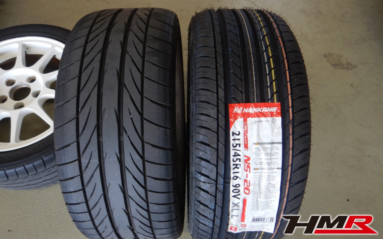 タイヤはナンカン製のNS-20に4本新品交換し、サイズは前後215/45R16になります。