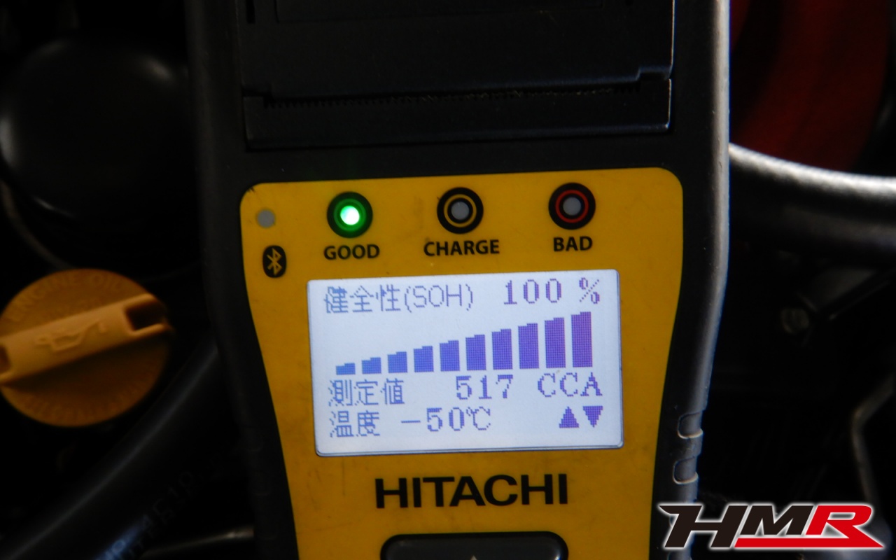 バッテリー、インテークホース、エアクリーナー、補機ベルト、プラグ、ブレーキ・クラッチマスターシリンダー、各部ゴム類の劣化、パッキン類・シール類からのオイル滲み・漏れ、ラジエターの劣化、冷却水漏れ、その他異音などをチェックしました。特に問題ありませんでした。