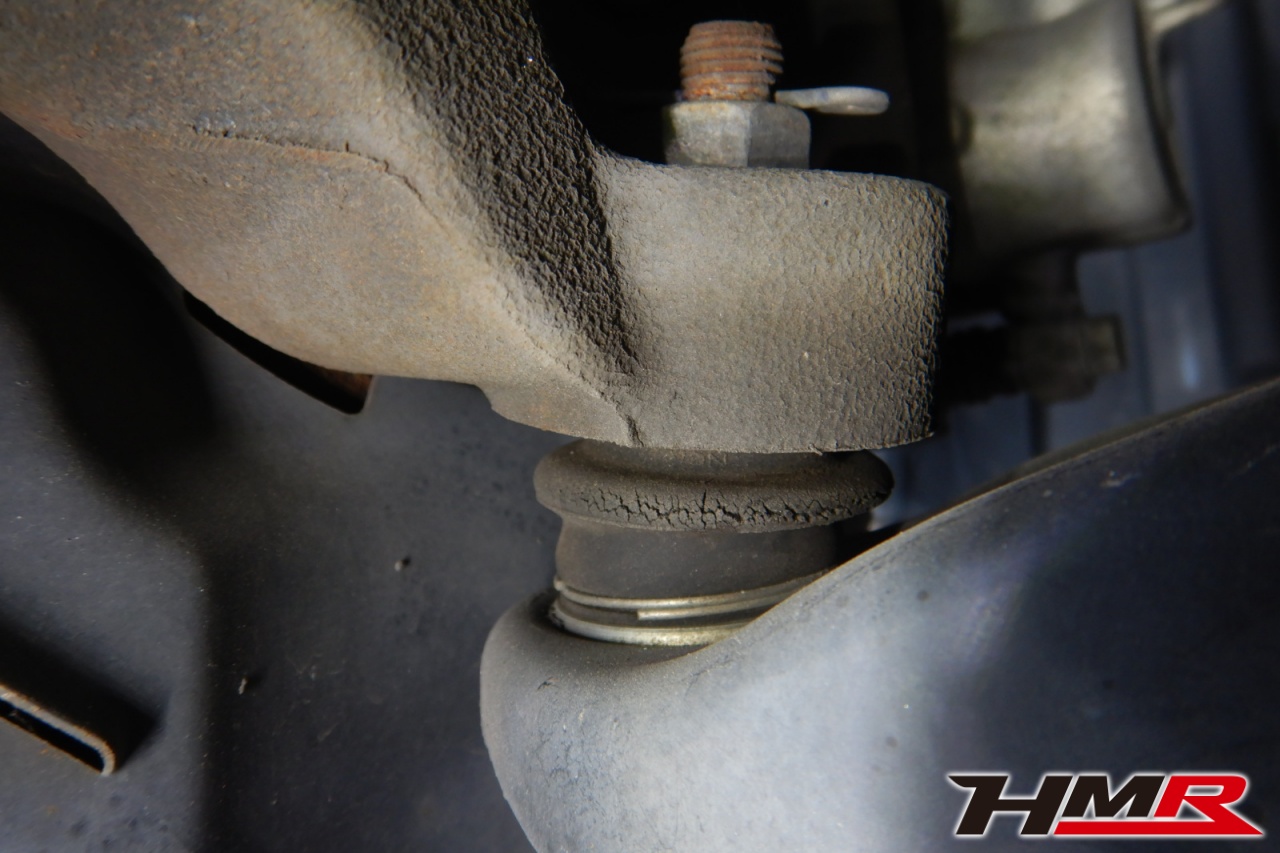 ハブベアリング・ボールジョイント、アーム・リンク類のガタ、ブッシュ・ブーツ類の劣化、エンジン・ミッション・デフからのオイル漏れと各マウント類、タイヤ溝の残量、空気圧の点検しました。左右フロントロアアームブーツ、右側デフマウントブッシュにヒビが見られました。すぐの交換は必要ないですが、タイミングを見ての交換をおすすめします。
