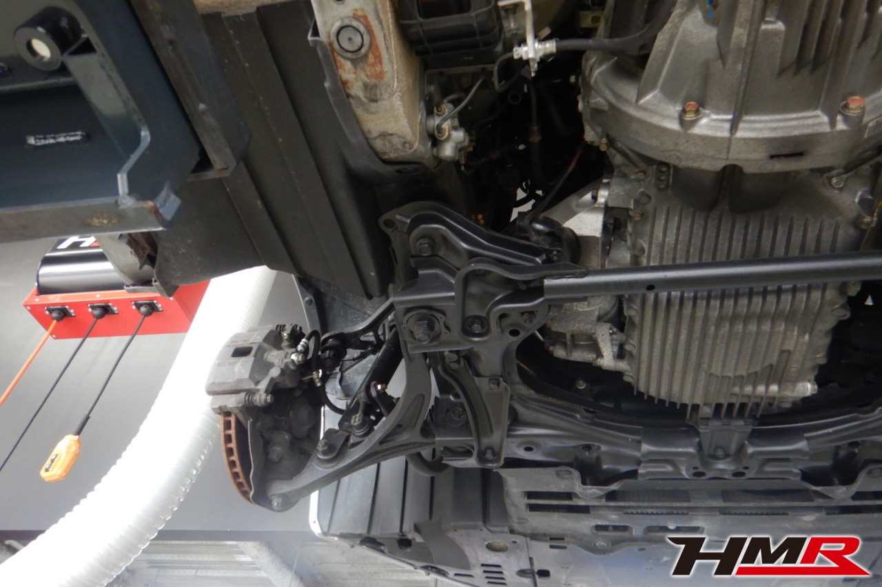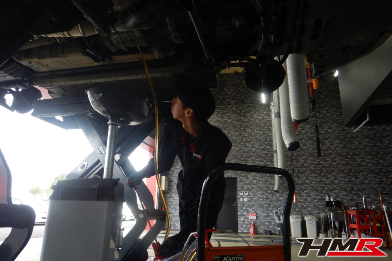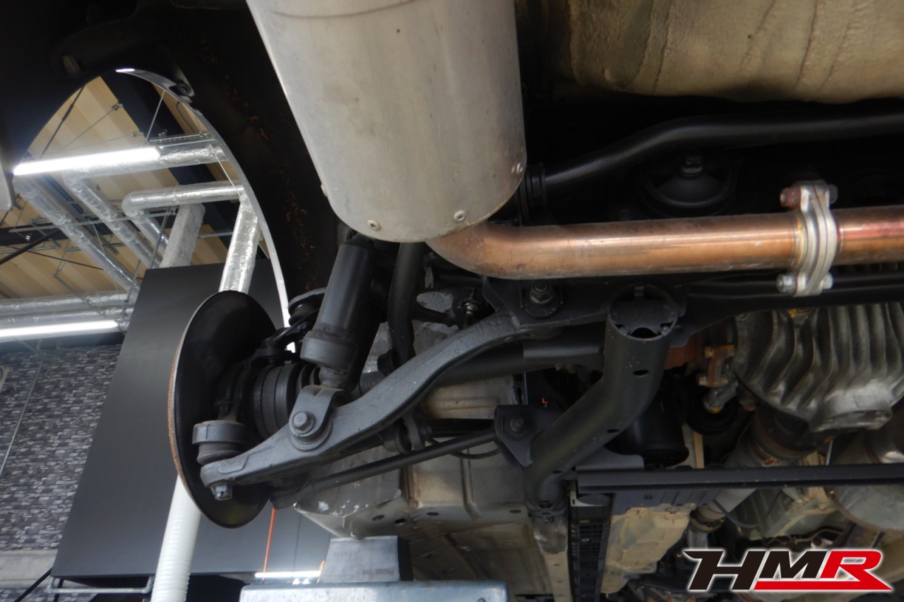 ハブベアリング・ボールジョイント、アーム・リンク類のガタ、ブッシュ・ブーツ類の劣化、エンジン・ミッション・デフからのオイル漏れと各マウント類、タイヤ溝の残量、空気圧の点検しました。フロントロアアームブッシュとトーロッドにヒビが見られましたがすぐの交換は必要ないのでタイミングを見ての交換をおすすめします。