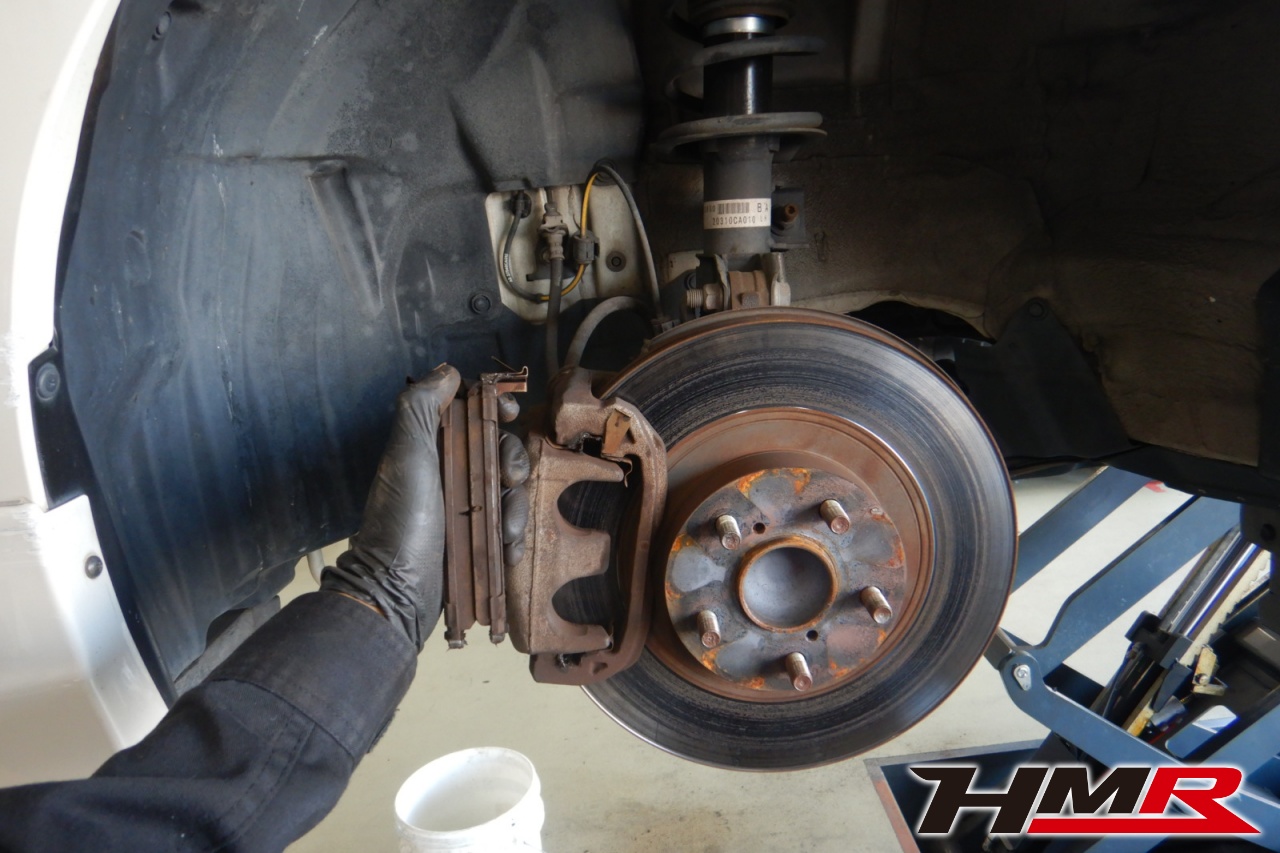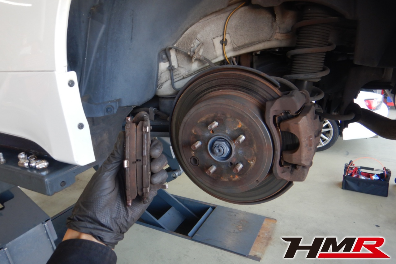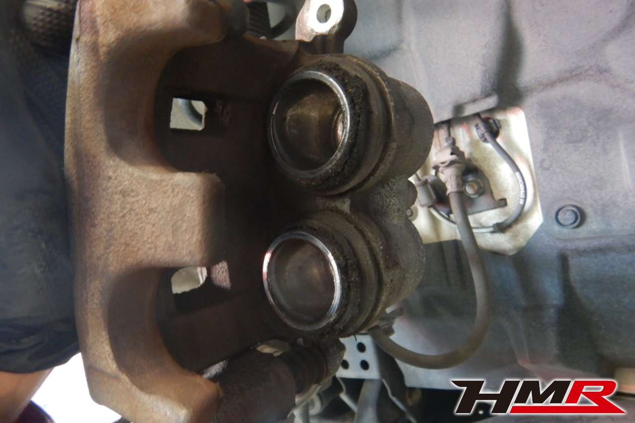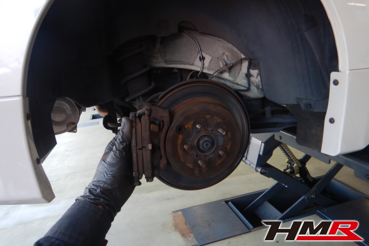 ブレーキキャリパーシール・キャリパーピストン、パッドの残量、ブレーキホースの劣化、ブレーキディスクローターの摩耗をチェックしました。ブレーキローターに摩耗が見られましたので今後交換をおすすめします。パッドの残量はおおよそフロント7.4mm・リア7.8mmになります。