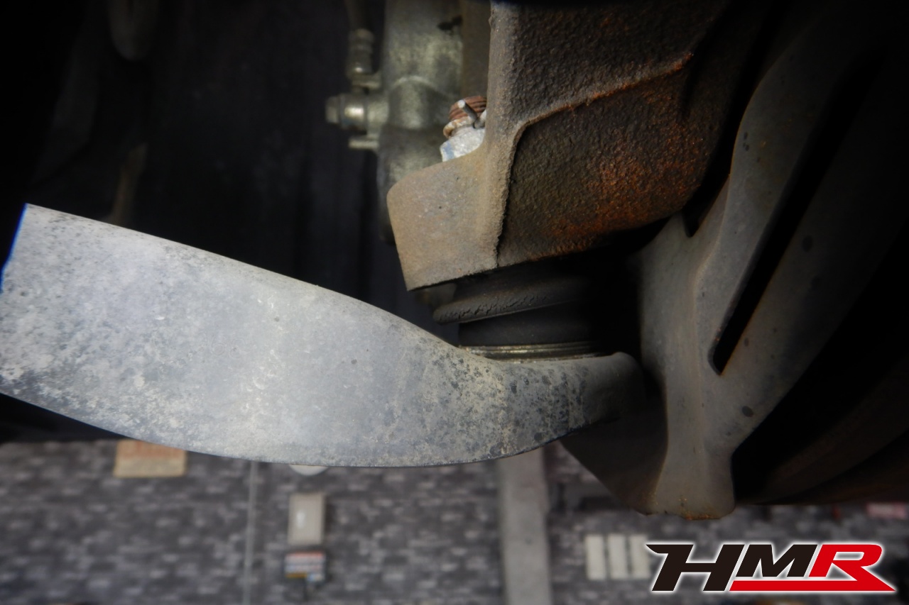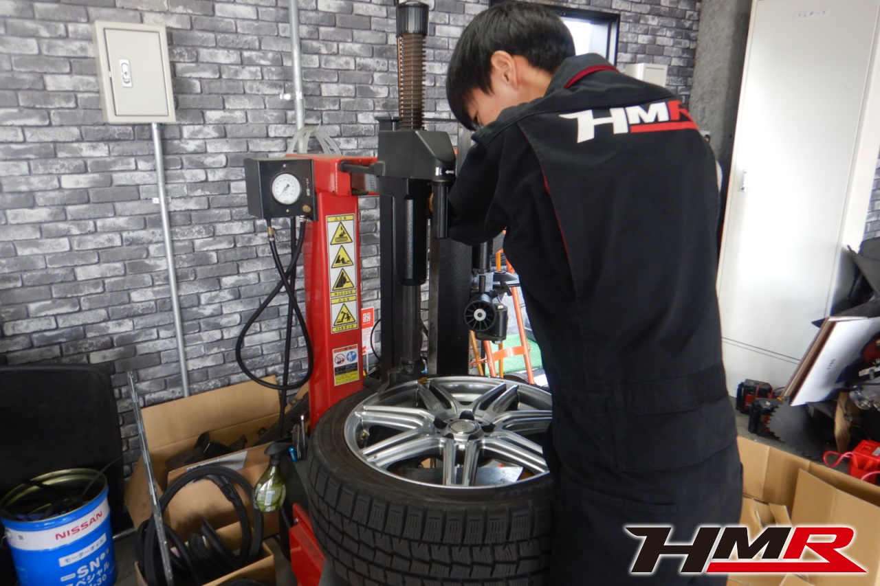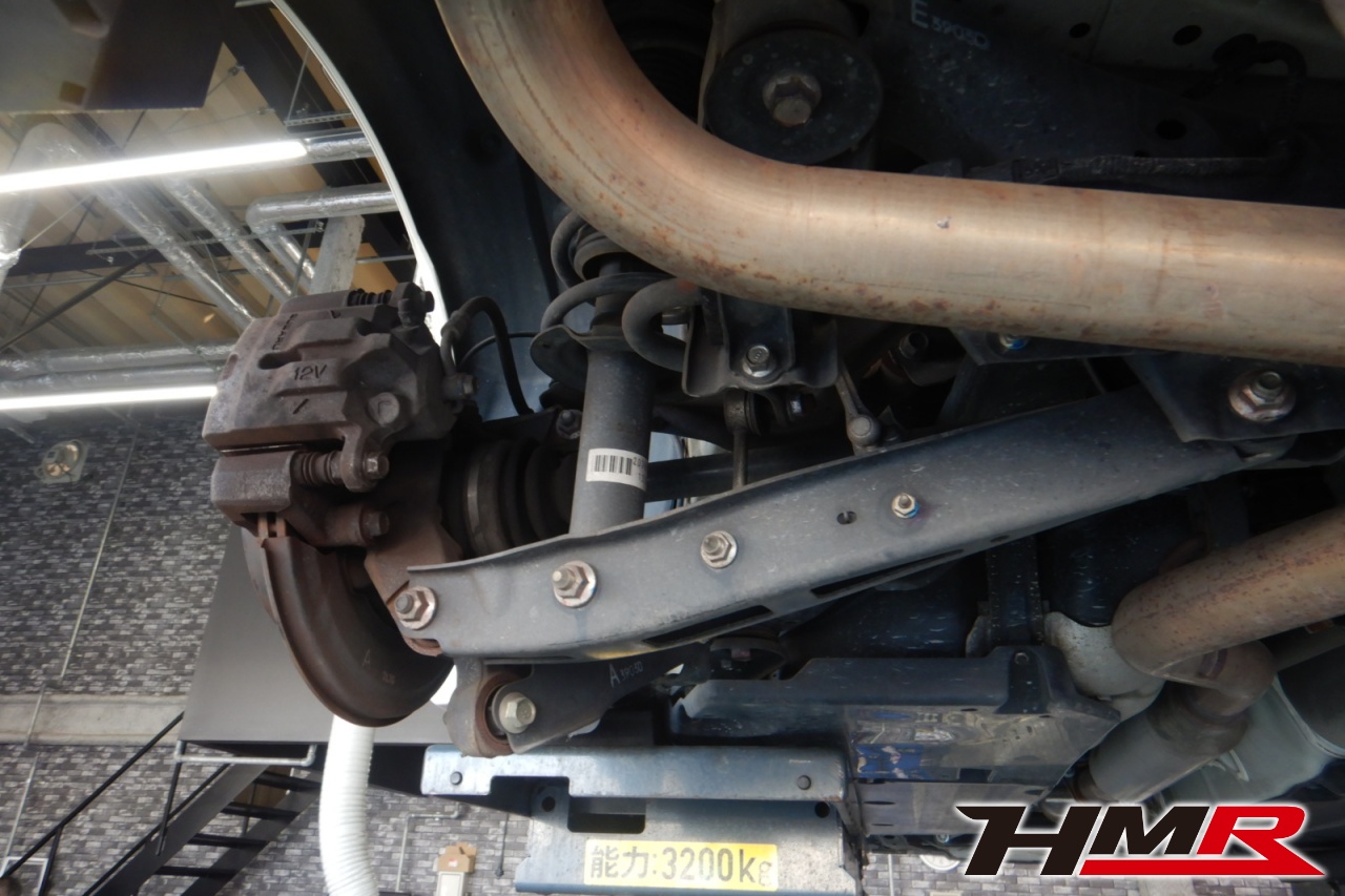 ハブベアリング・ボールジョイント、アーム・リンク類のガタ、ブッシュ・ブーツ類の劣化、エンジン・ミッション・デフからのオイル漏れと各マウント類、タイヤ溝の残量、空気圧の点検しました。左側フロントロアアームブーツにヒビが見られましたがすぐの交換は必要ないのでタイミングを見ての交換をおすすめします。タイヤはご用命いただいていた新品のナンカン製NS2を4本交換しました。サイズはフロント。リアともに215/45R17になります。