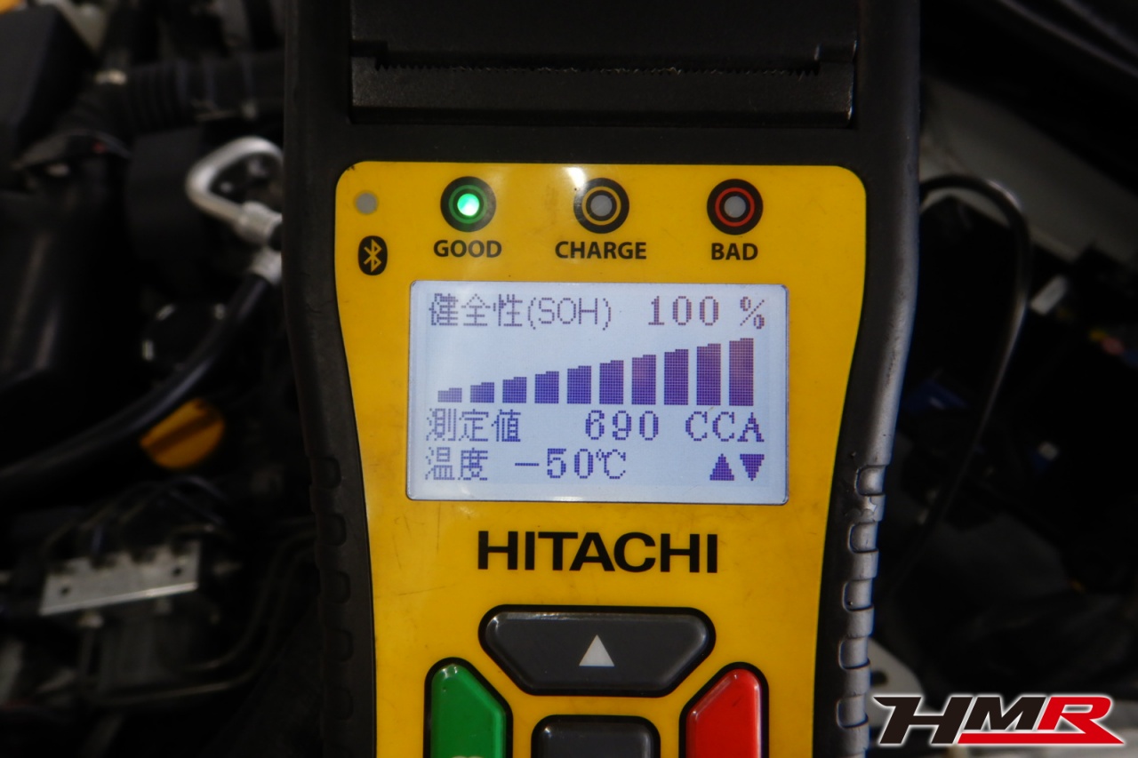 バッテリー、インテークホース、エアクリーナー、補機ベルト、プラグ、ブレーキ・クラッチマスターシリンダー、各部ゴム類の劣化、パッキン類・シール類からのオイル滲み・漏れ、ラジエターの劣化、冷却水漏れ、その他異音などをチェックしました。特に問題はありませんでした。