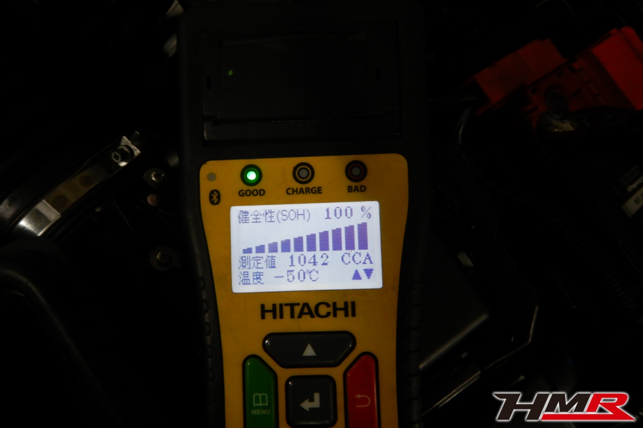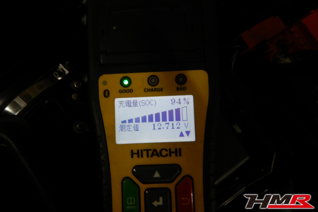 バッテリー、インテークホース、エアクリーナー、補機ベルト、プラグ、ブレーキ・クラッチマスターシリンダー、各部ゴム類の劣化、パッキン類・シール類からのオイル滲み・漏れ、ラジエターの劣化、冷却水漏れ、その他異音などをチェックしました。特に問題ありませんでした。