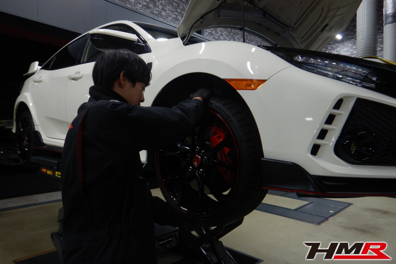 HMR(エイチエムアール)の秋山です。今回はGathersナビ バックカメラ ETC装備のシビックタイプR(FK8)の納車前点検整備を行いました。担当メカニックは手代木です。