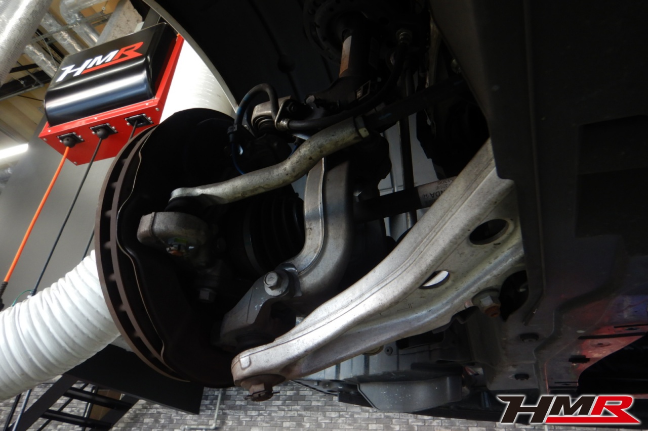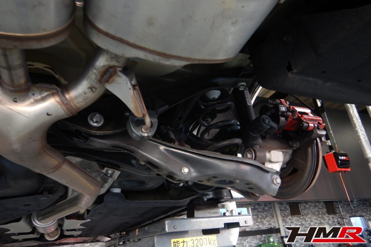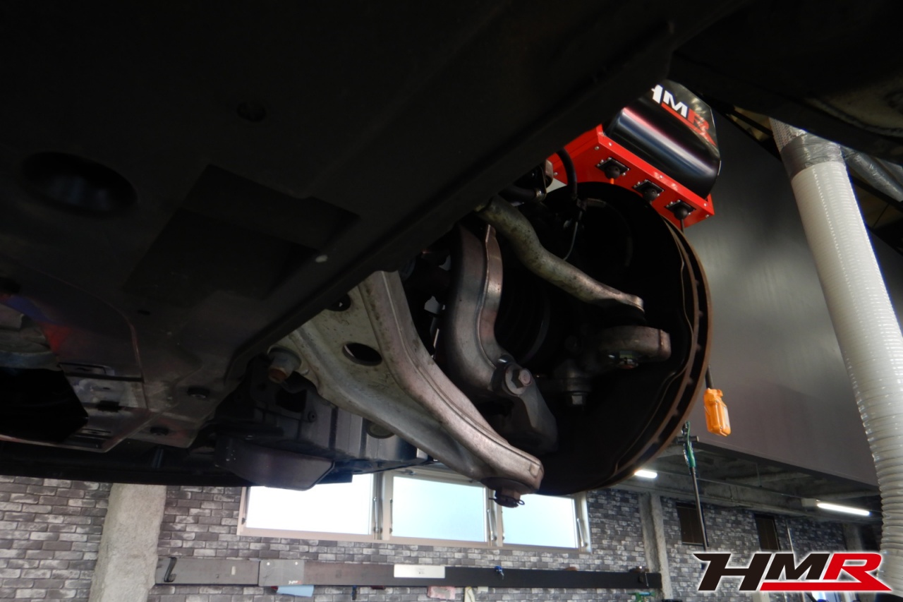 ハブベアリング・ボールジョイント、アーム・リンク類のガタ、ブッシュ・ブーツ類の劣化、エンジン・ミッション・デフからのオイル漏れと各マウント類、タイヤ溝の残量、空気圧の点検し、特に問題ありませんでした。