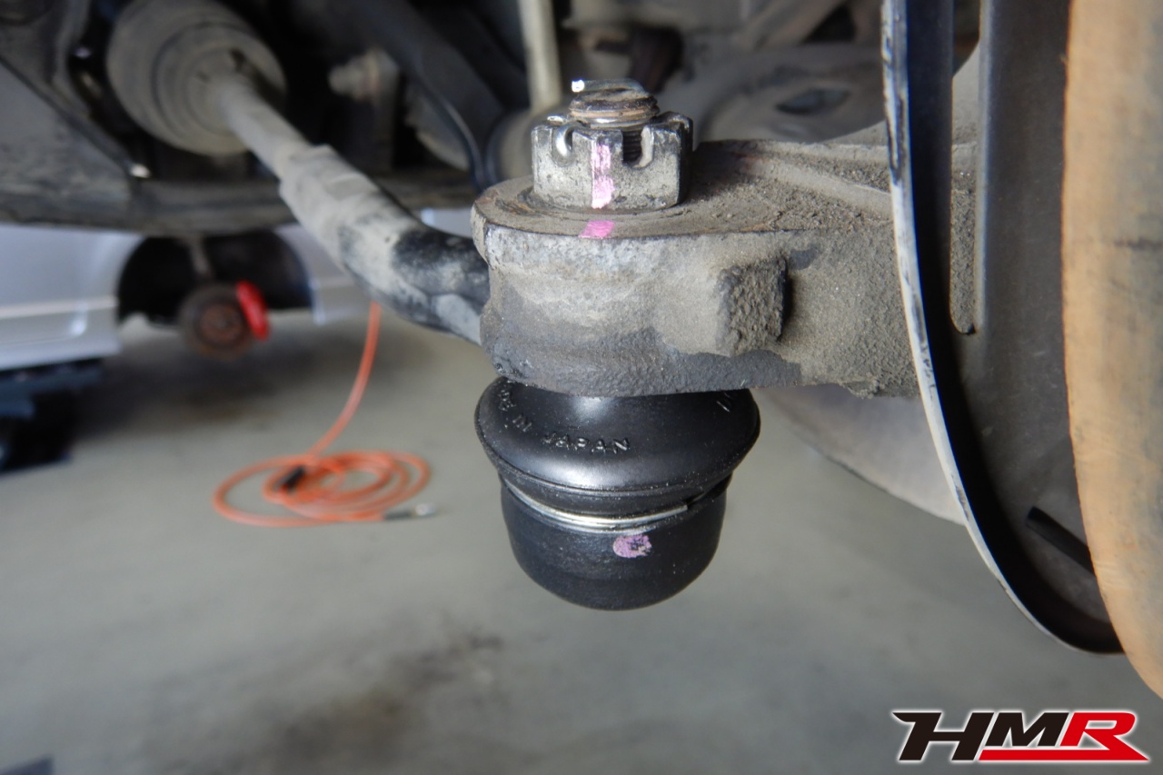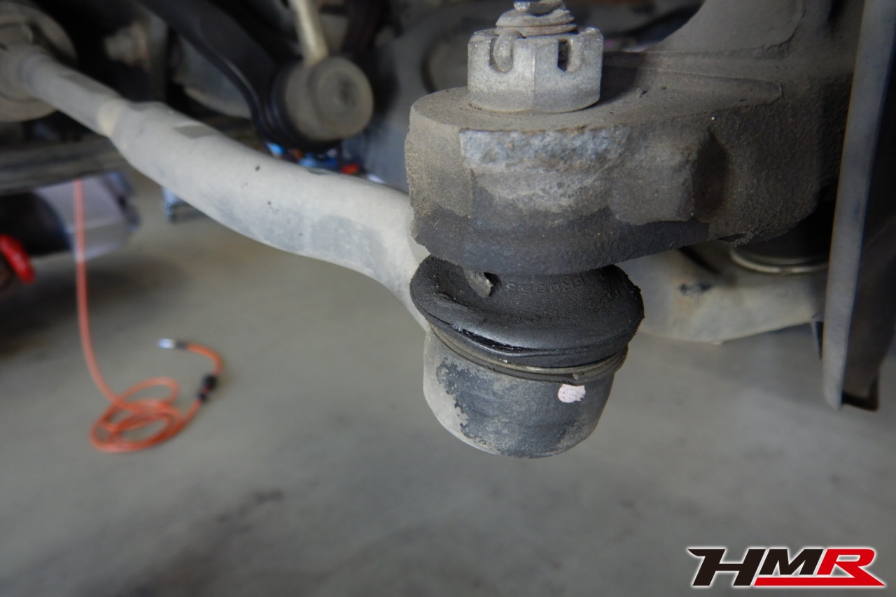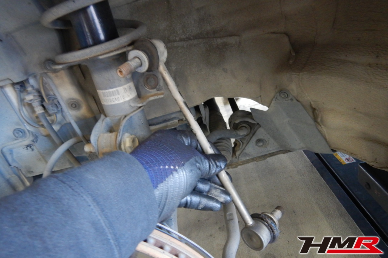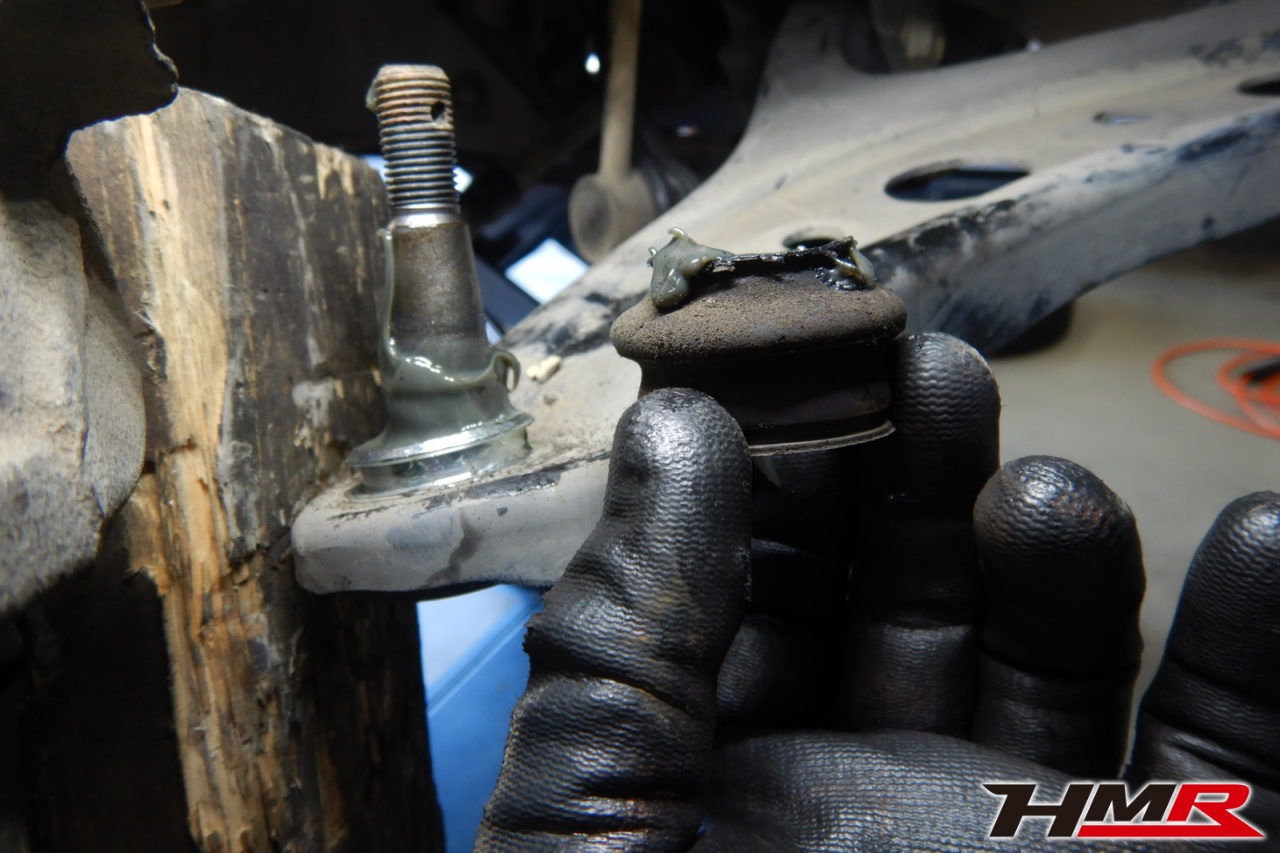 ハブベアリング・ボールジョイント、アーム・リンク類のガタ、ブッシュ・ブーツ類の劣化、エンジン・ミッション・デフからのオイル漏れと各マウント類、タイヤ溝の残量、空気圧の点検をしました。右側タイロッドエンドブーツ、左右フロントロアアームブーツ、左側フロントスタビリンクブーツが切れていましたので交換しました。またデフマウント、フロントロアアームブッシュにヒビが見られましたがすぐの交換は必要ないので今後タイミングをみて交換をおすすめします。