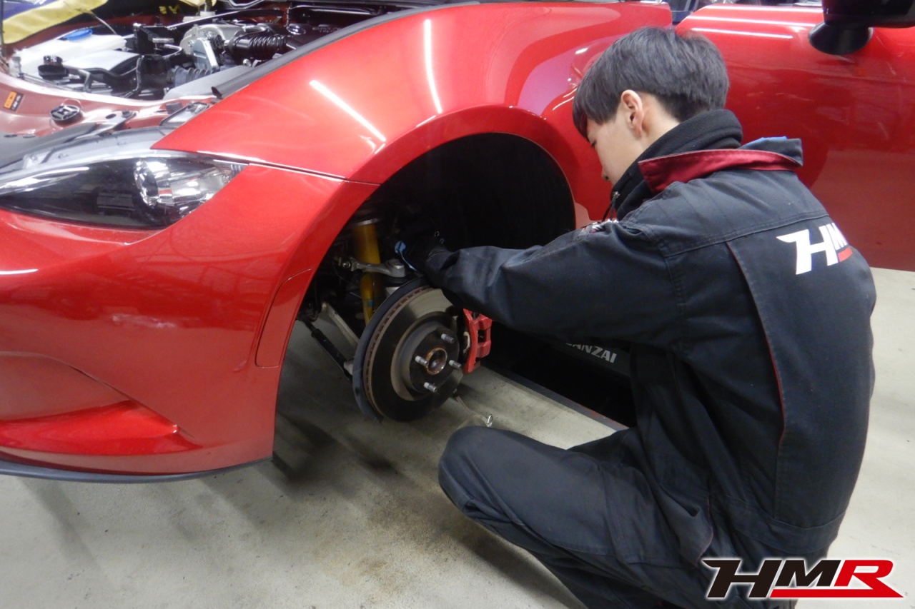 HMR(エイチエムアール)の秋山です。今回は1オーナー マツダスピードエアロ装備のロードスター(ND5RC)の納車前点検整備を行いました。担当メカニックは手代木です。