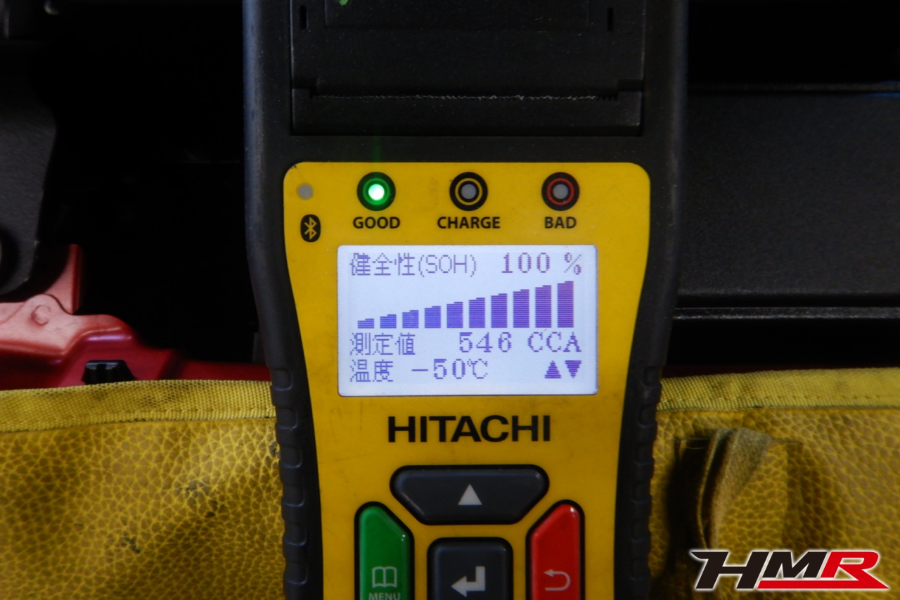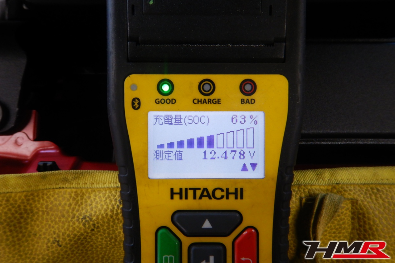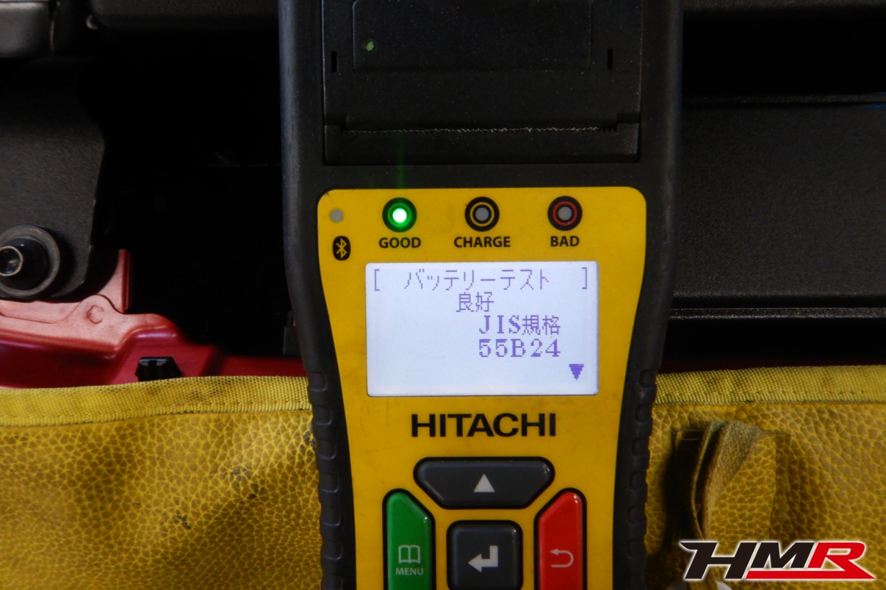 バッテリー、インテークホース、エアクリーナー、補機ベルト、プラグ、ブレーキ・クラッチマスターシリンダー、各部ゴム類の劣化、パッキン類・シール類からのオイル滲み・漏れ、ラジエターの劣化、冷却水漏れ、その他異音等をチェックし、バッテリーを満充電しました。