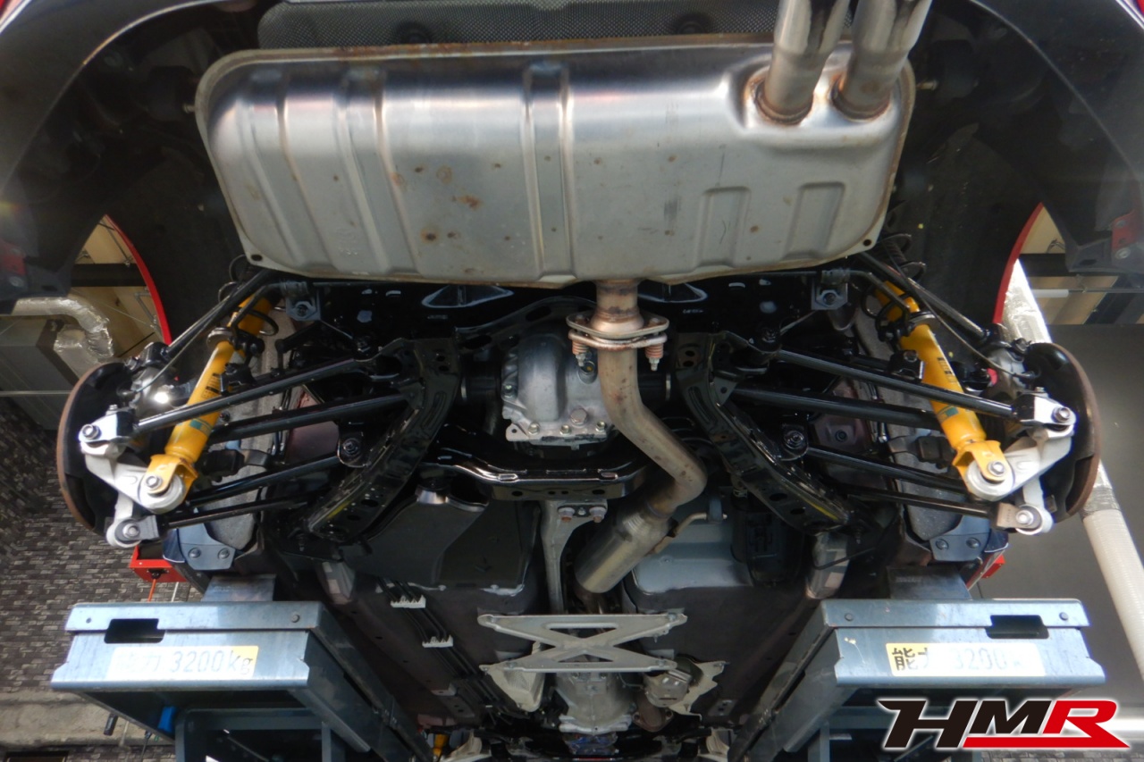 ハブベアリング・ボールジョイント、アーム・リンク類のガタ、ブッシュ・ブーツ類の劣化、エンジン・ミッション・デフからのオイル漏れと各マウント類、タイヤ溝の残量、空気圧の点検しました。特に問題ありませんでした。タイヤは2015年製ヨコハマのアドバンスポーツで、サイズは前後195/50R16でした。残り溝はフロント、リアともにおおよそ5.2mmでした。溝はありますが製造から時間が経過しておりますので、早めのご交換をおすすめします。