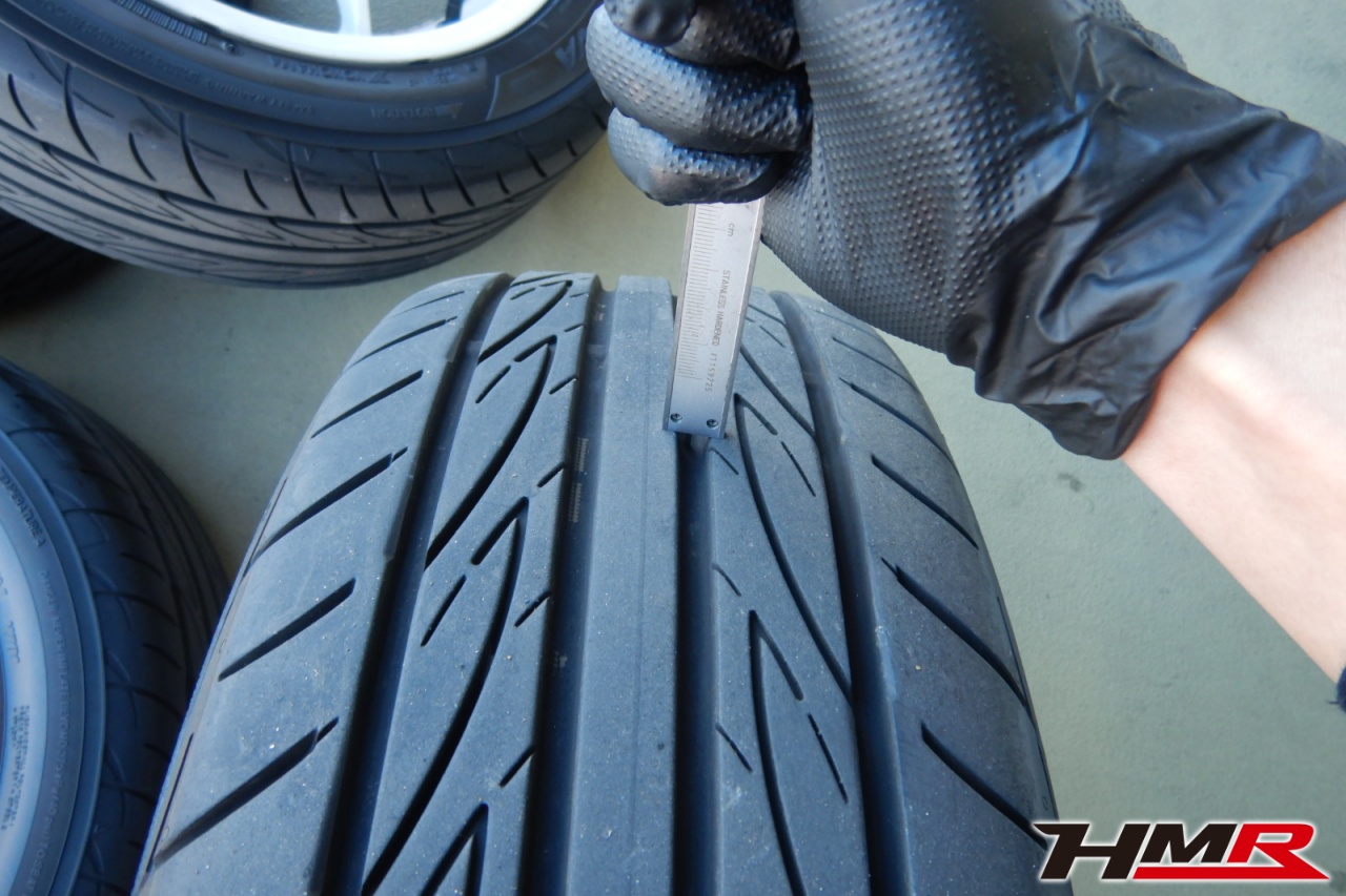 タイヤは2021年製ヨコハマのADVAN FLEVAでサイズはフロント・リアともに195/55R15でした。残り溝はフロント・リアともにおおよそ6.5mmでした。