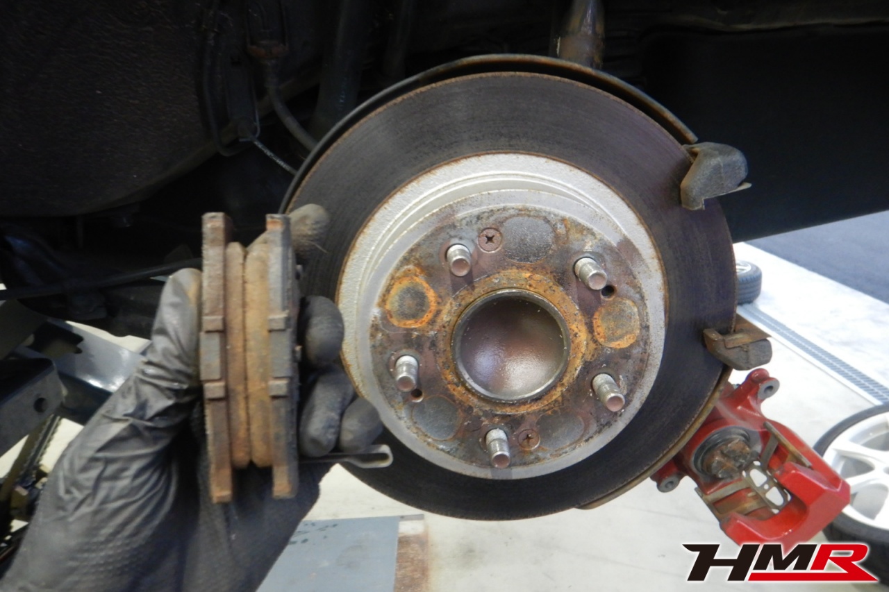 ブレーキキャリパーシール・キャリパーピストン、パッドの残量、ブレーキホースの劣化、ブレーキディスクローターの摩耗をチェックしました。特に問題ありませんでした。ブレーキパッドの残量はおおそよフロント6.0mm・リア5.8mmでした。