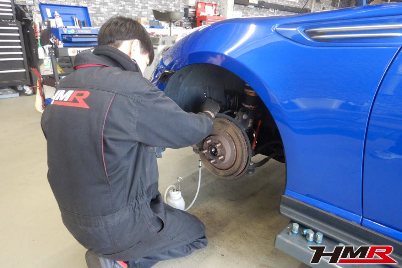HMR(エイチエムアール)の秋山です。今回は6MT レイズ18インチ HKS車高調装備のスバル BRZ(ZC6)の納車前点検整備を行いました。担当メカニックは手代木です。