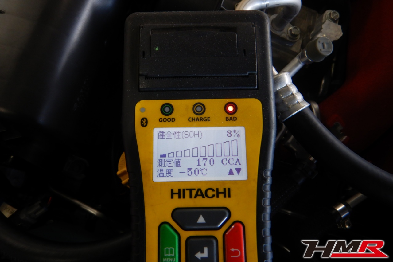 バッテリー、インテークホース、エアクリーナー、補機ベルト、プラグ、ブレーキ・クラッチマスターシリンダー、各部ゴム類の劣化、パッキン類・シール類からのオイル滲み・漏れ、ラジエターの劣化、冷却水漏れ、その他異音などをチェックしました。バッテリーが弱っていましたので交換しました。ミッションエクステンションハウジングオイルシール漏れがありましたので後ほど修理を行いました。