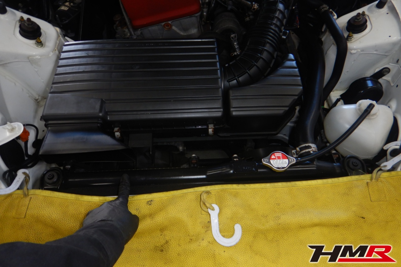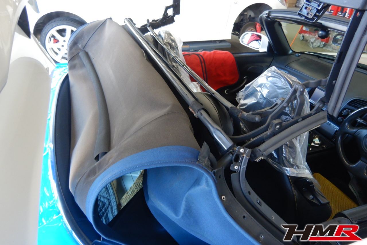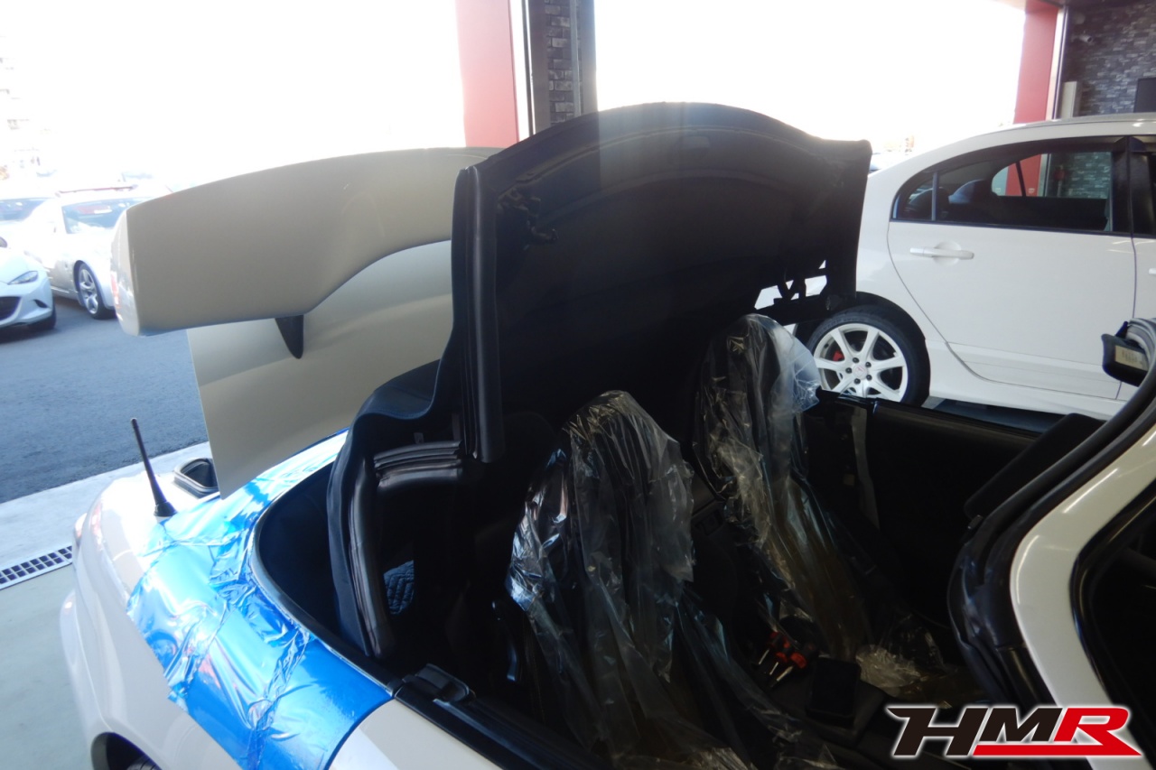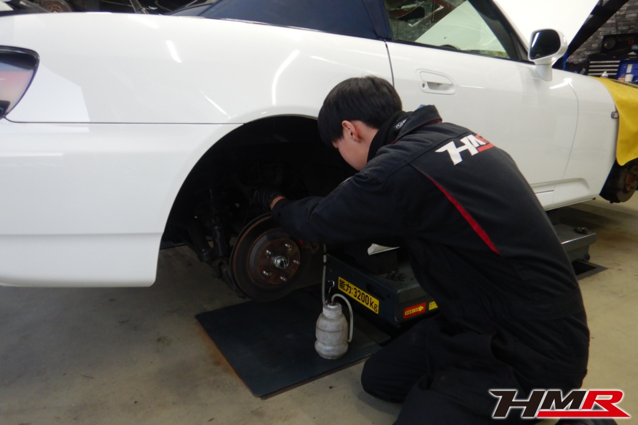 HMR(エイチエムアール)の秋山です。今回はバッドムーンレシングマフラー 専用シート装備のS2000(AP2)タイプSの納車前点検整備を行いました。担当メカニックは手代木です。