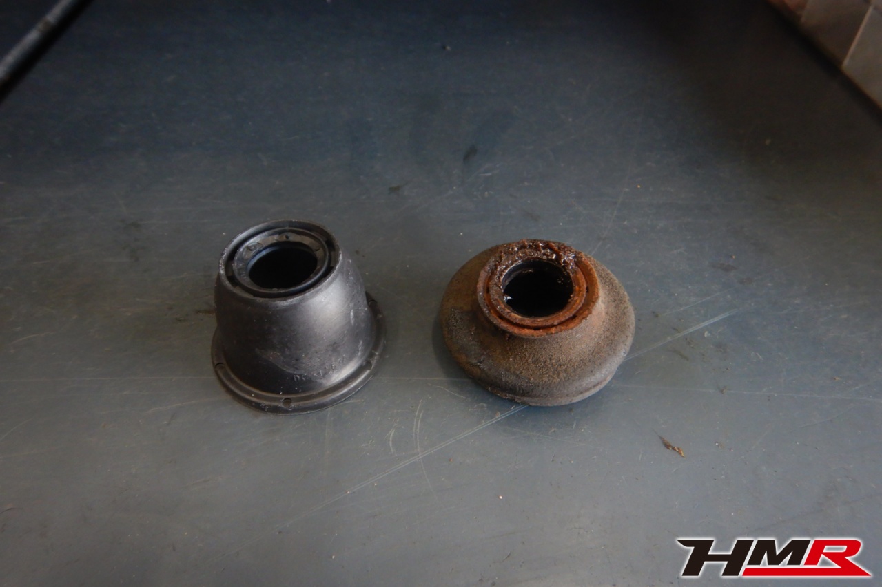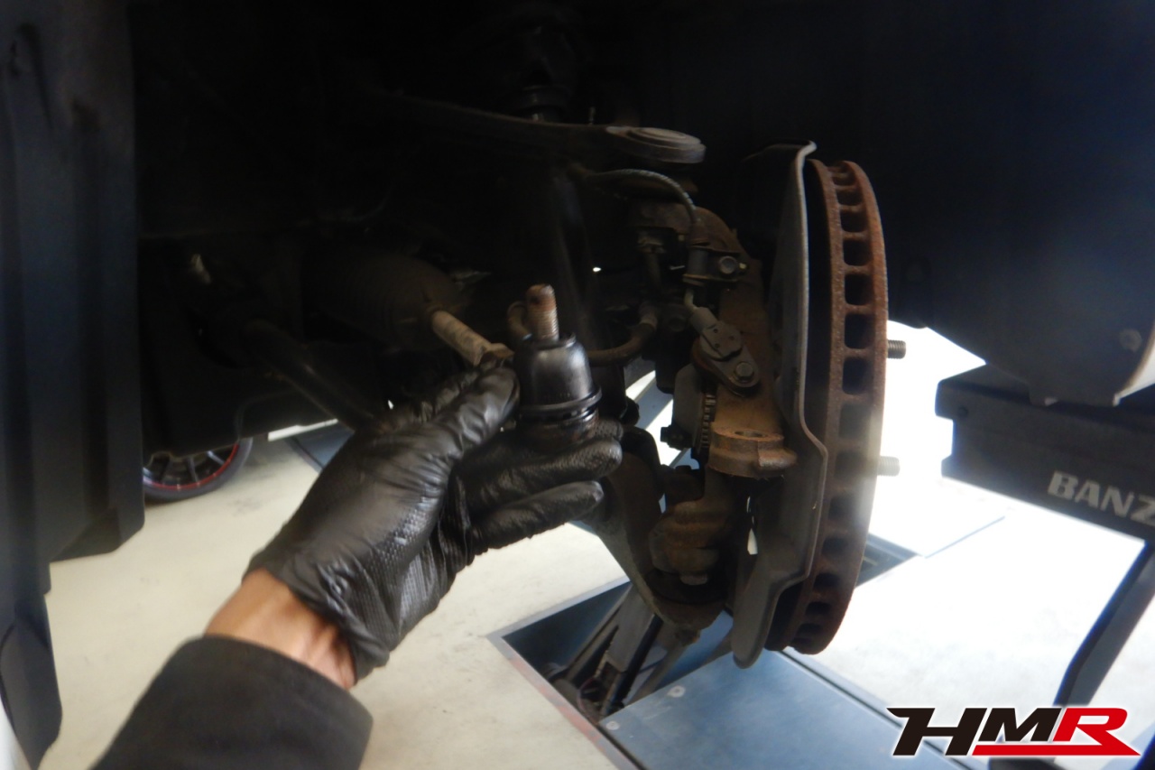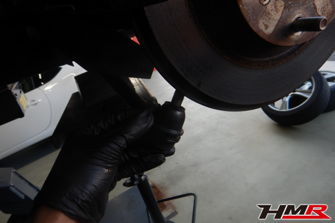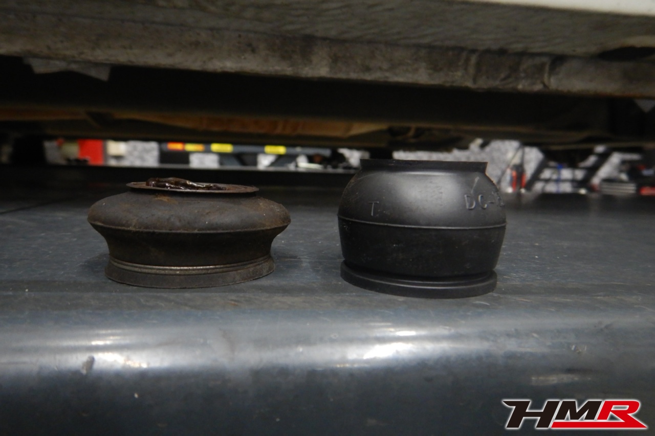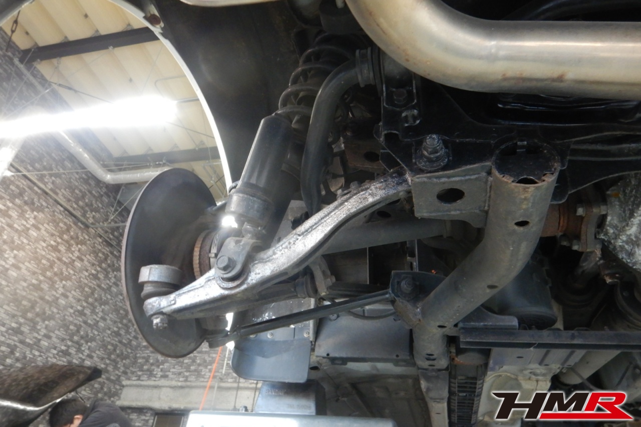 ハブベアリング・ボールジョイント、アーム・リンク類のガタ、ブッシュ・ブーツ類の劣化、エンジン・ミッション・デフからのオイル漏れと各マウント類、タイヤ溝の残量、空気圧の点検を行いました。左右タイロッドエンドブーツ、左右フロントロアアーム、左右フロントスタビリンク、左右トーロッドブーツにヒビが見られましたので交換しました。