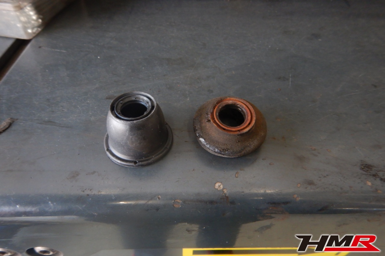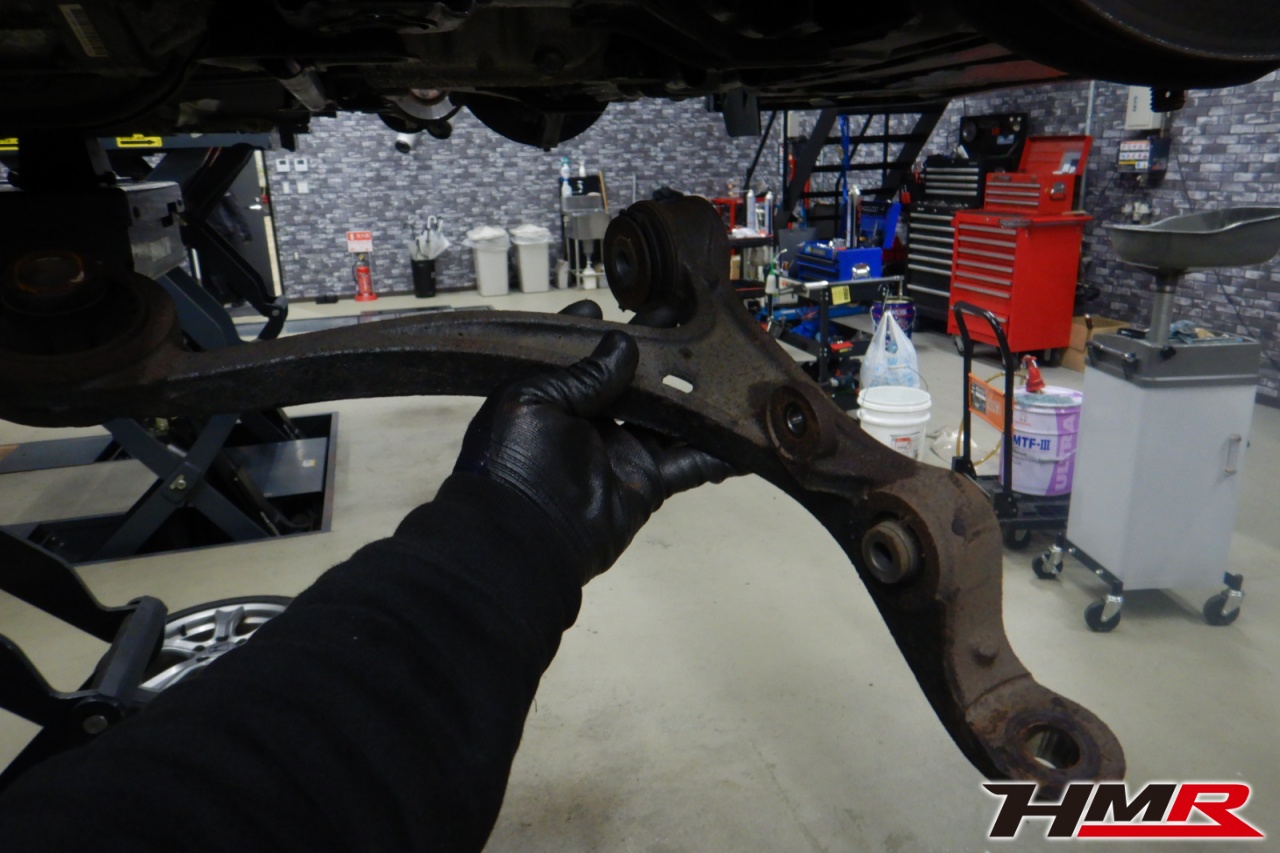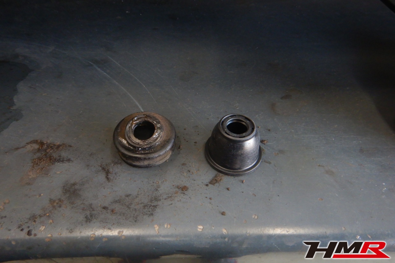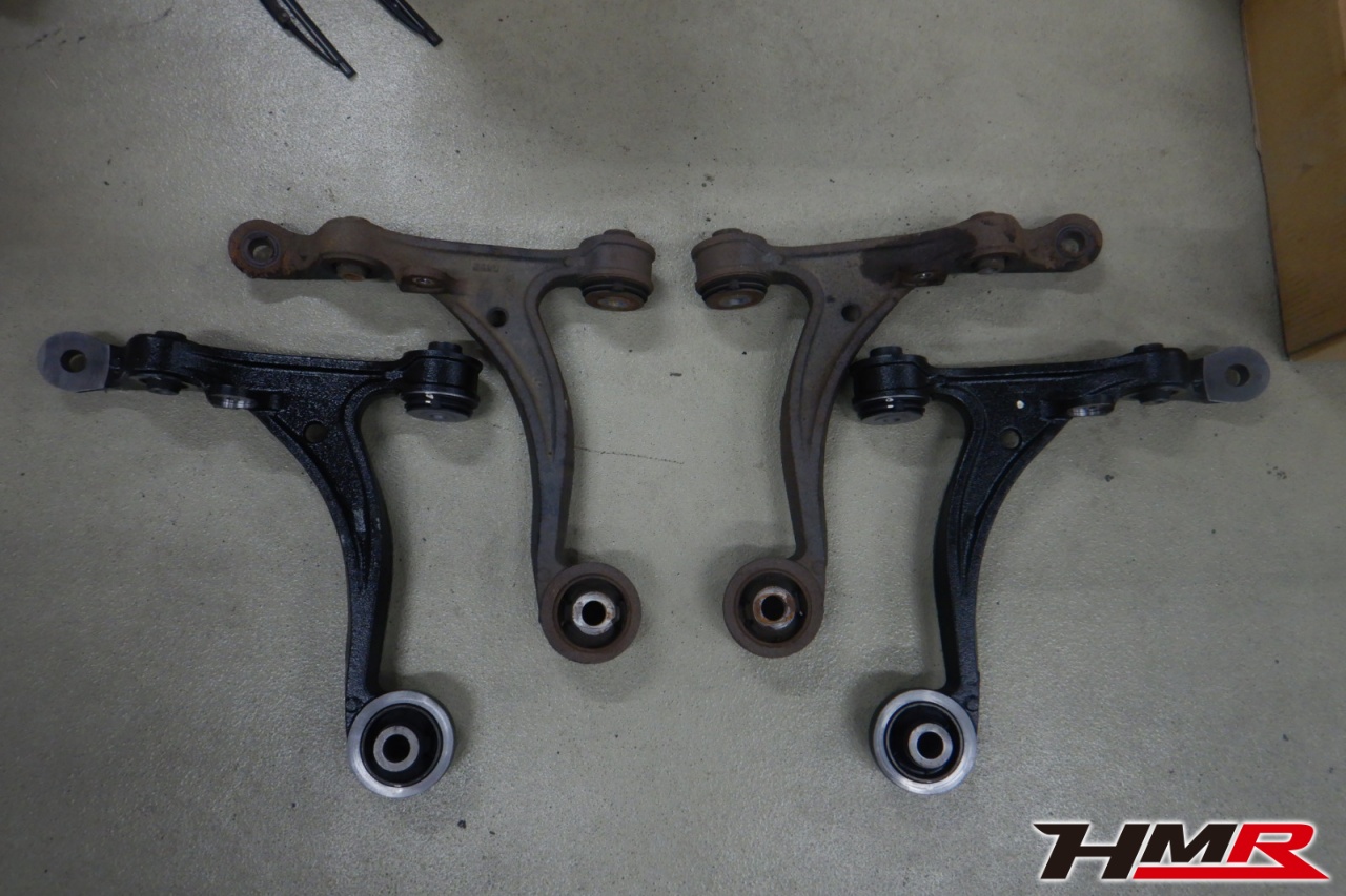 ハブベアリング・ボールジョイント、アーム・リンク類のガタ、ブッシュ・ブーツ類の劣化、エンジン・ミッション・デフからのオイル漏れと各マウント類、タイヤ溝の残量、空気圧の点検を行いました。左右タイロッドエンドブーツ、左右フロントロアアーム、左右フロントスタビリンク、左右トーロッドブーツにヒビが見られましたので交換しました。
