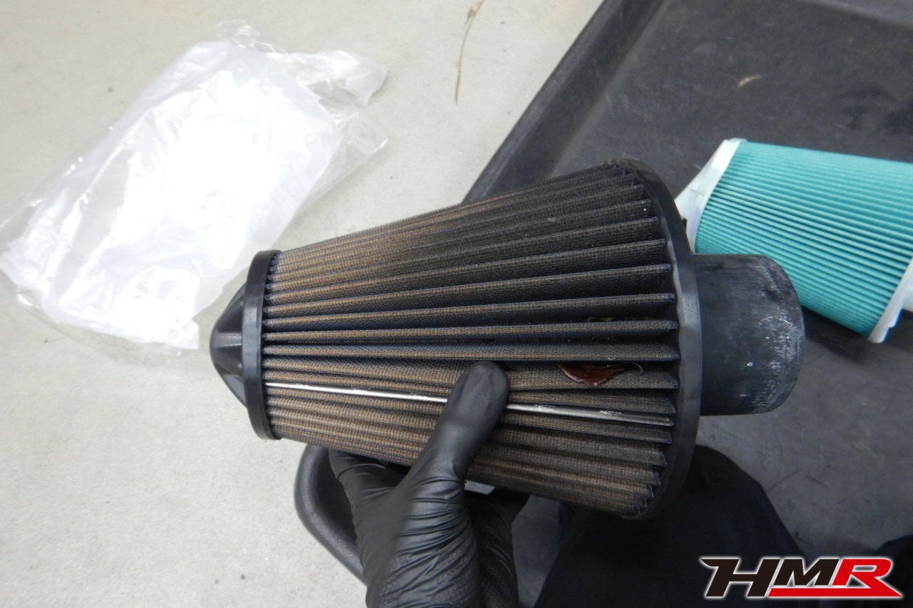バッテリー、インテークホース、エアクリーナー、補機ベルト、プラグ、ブレーキ・クラッチマスターシリンダー、各部ゴム類の劣化、パッキン類・シール類からのオイル滲み・漏れ、ラジエターの劣化、冷却水漏れ、その他異音などをチェックしました。プラグに摩耗がありましたので交換しました。またエアクリーナーに汚れが見られましたので交換しました。