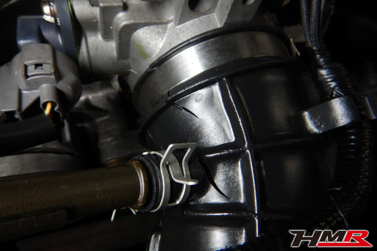 バッテリー、インテークホース、エアクリーナー、補機ベルト、プラグ、ブレーキ・クラッチマスターシリンダー、各部ゴム類の劣化、パッキン類・シール類からのオイル滲み・漏れ、ラジエターの劣化、冷却水漏れ、その他異音などをチェックしました。ヘッドカバーパッキン、クラッチマスターから漏れとエアインテークチューブに切れが見られましたのでそれぞれ交換しました。