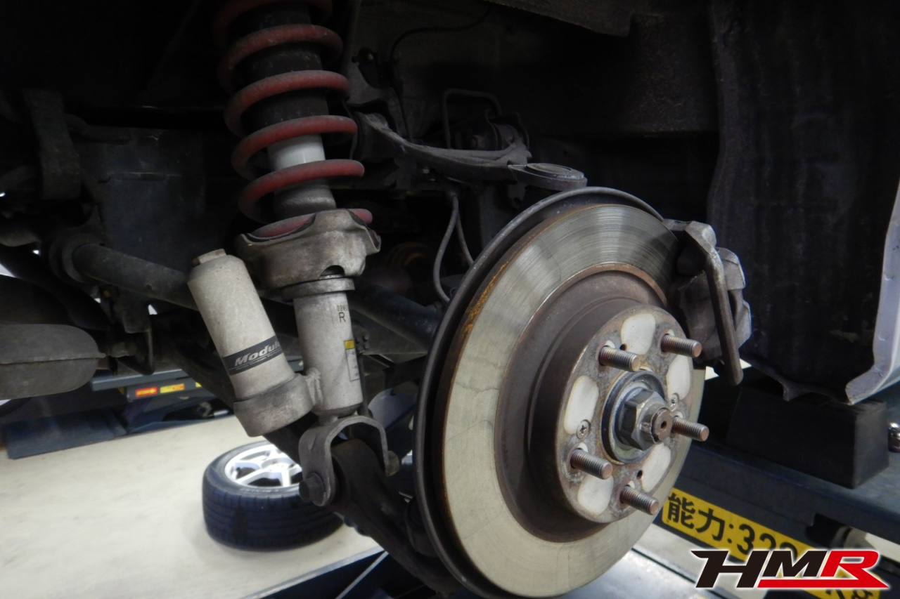 ハブベアリング・ボールジョイント、アーム・リンク類のガタ、ブッシュ・ブーツ類の劣化、エンジン・ミッション・デフからのオイル漏れと各マウント類、タイヤ溝の残量、空気圧の点検しました。右側フロントスタビリンクブーツが切れていたため交換しました。フロントロアアームブッシュにヒビが見られましたが早急な交換は必要なかったため、今後乗っていく中で交換をおすすめします。
