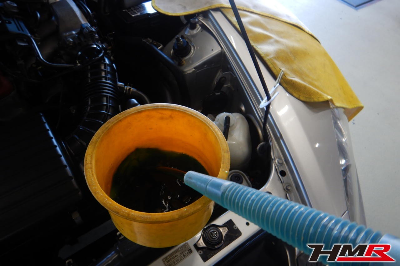 エンジンオイル、オイルフィルター、クーラント液、ミッションオイル、リアデフオイル、ブレーキフルードを交換しました。エンジンオイルはWAKO’SプロステージS 10W-40、ミッションオイルはHonda MTF-3、リアデフオイルはWAKO’S ギアオイルDF-90に交換しています。