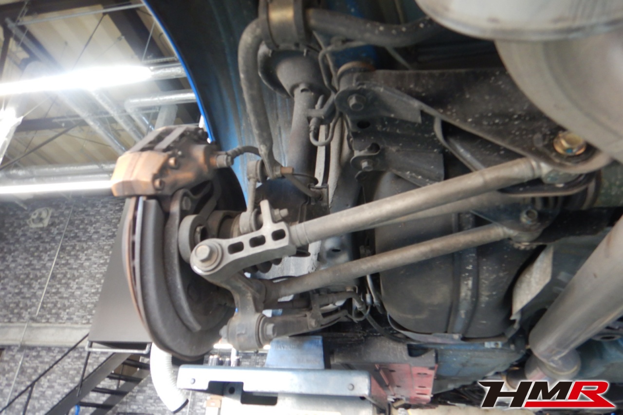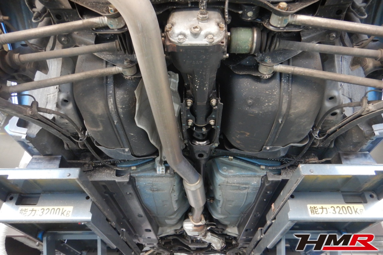 ハブベアリング・ボールジョイント、アーム・リンク類のガタ、ブッシュ・ブーツ類の劣化、エンジン・ミッション・デフからのオイル漏れと各マウント類、タイヤ溝の残量、空気圧の点検しました。特に問題ありませんでした。