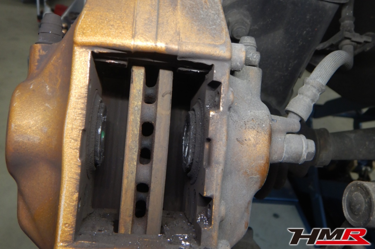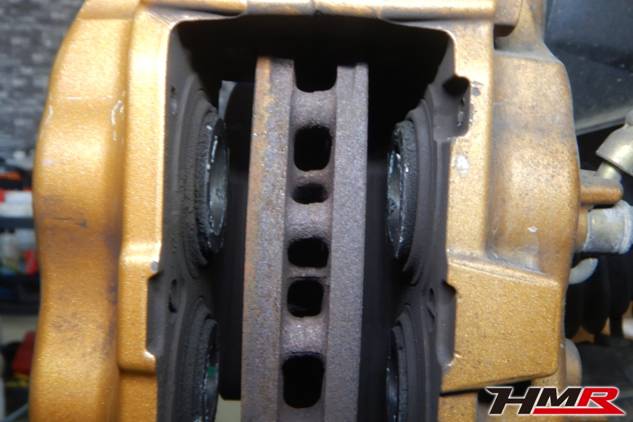 ブレーキキャリパーシール・キャリパーピストン、パッドの残量、ブレーキホースの劣化、ブレーキディスクローターの摩耗をチェックしました。特に問題ありませんでした。パッドの残量はおおおそフロント4.5mm・リア4.3mmでした。